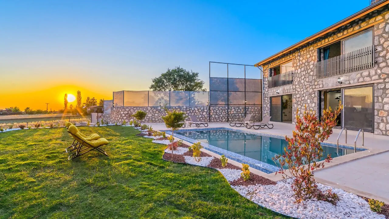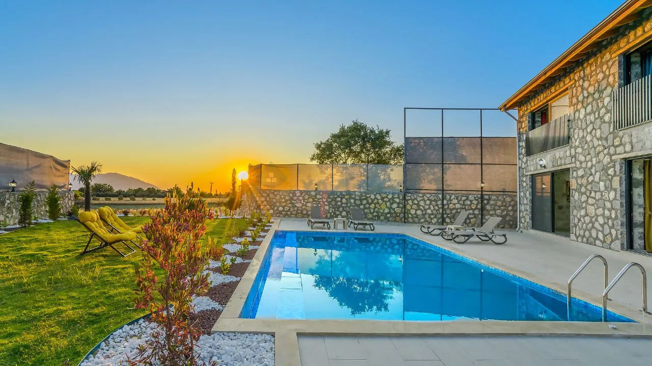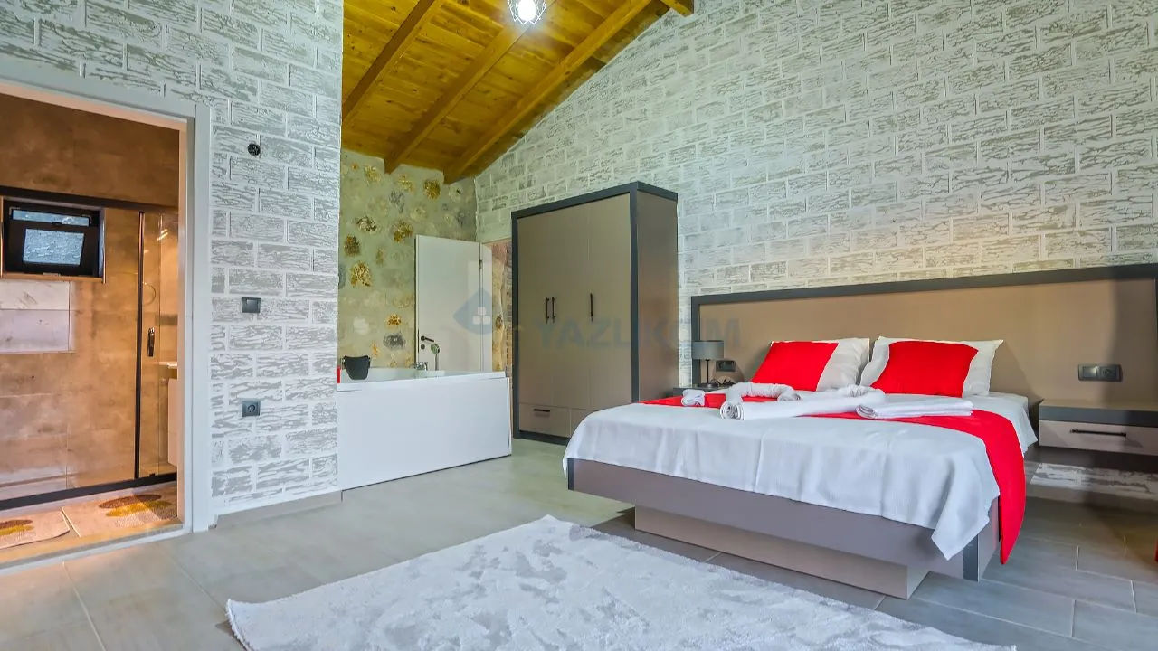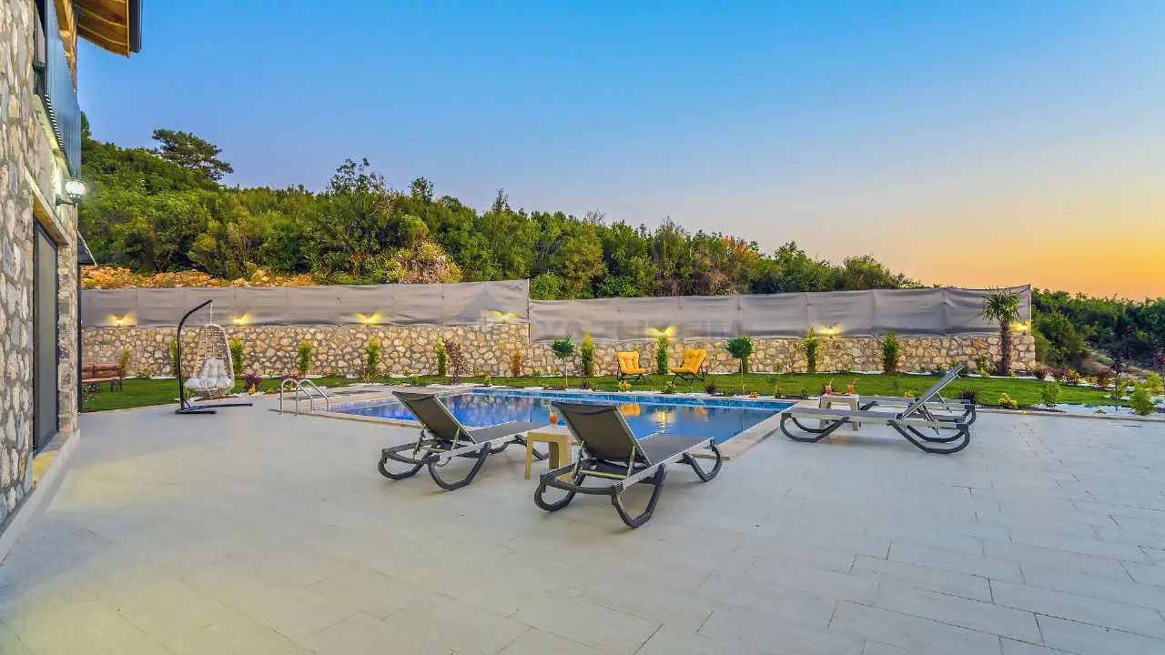 Our villa is located in Yaka Village, which is famous for its natural beauties in Fethiye. It is located 30 45 minutes by car from many touristic and natural beauties such as Saklıkent Canyon, Gizlikent waterfall, Patara Beach. Since there is no other house or structure around, it is in a quiet location and is 100% sheltered.It is a 10-minute walk from Yaka Park and a 15-minute walk from Tlos Ancient City.Our villa is located in Yaka Village, in the heart of Akdağlar, covered with natural pine and juniper trees, where you can wake up to the sounds of birds.It is a detached building of 120 m2 on a land of 1050 m2 and is completely made of natural stone.It has a road and electricity and water subscriptions.It is a new building and the furniture is of high quality.There is a 50 square meter hobby garden, a 500 square meter green grass playground, a barbecue area. Its pool is 8*4 in size.Our spacious villa is very suitable for families.Tlos Ancient City 960 mTlos Amphitheatre 760 mYaka Park 740 mProperty FeaturesParkingGuest RoomNear the Historical PeninsulaInterior FeaturesAir ConditioningOpen KitchenLog FireShower CabinParent's BathroomBalconyJacuzziExterior FeaturesDigital Satellite SystemLocation AmenitiesClose to Historical PeninsulaParkingGuest RoomNear the Historical PeninsulaAir ConditioningOpen KitchenLog FireShower CabinParent's BathroomBalconyJacuzziDigital Satellite SystemClose to Historical Peninsula