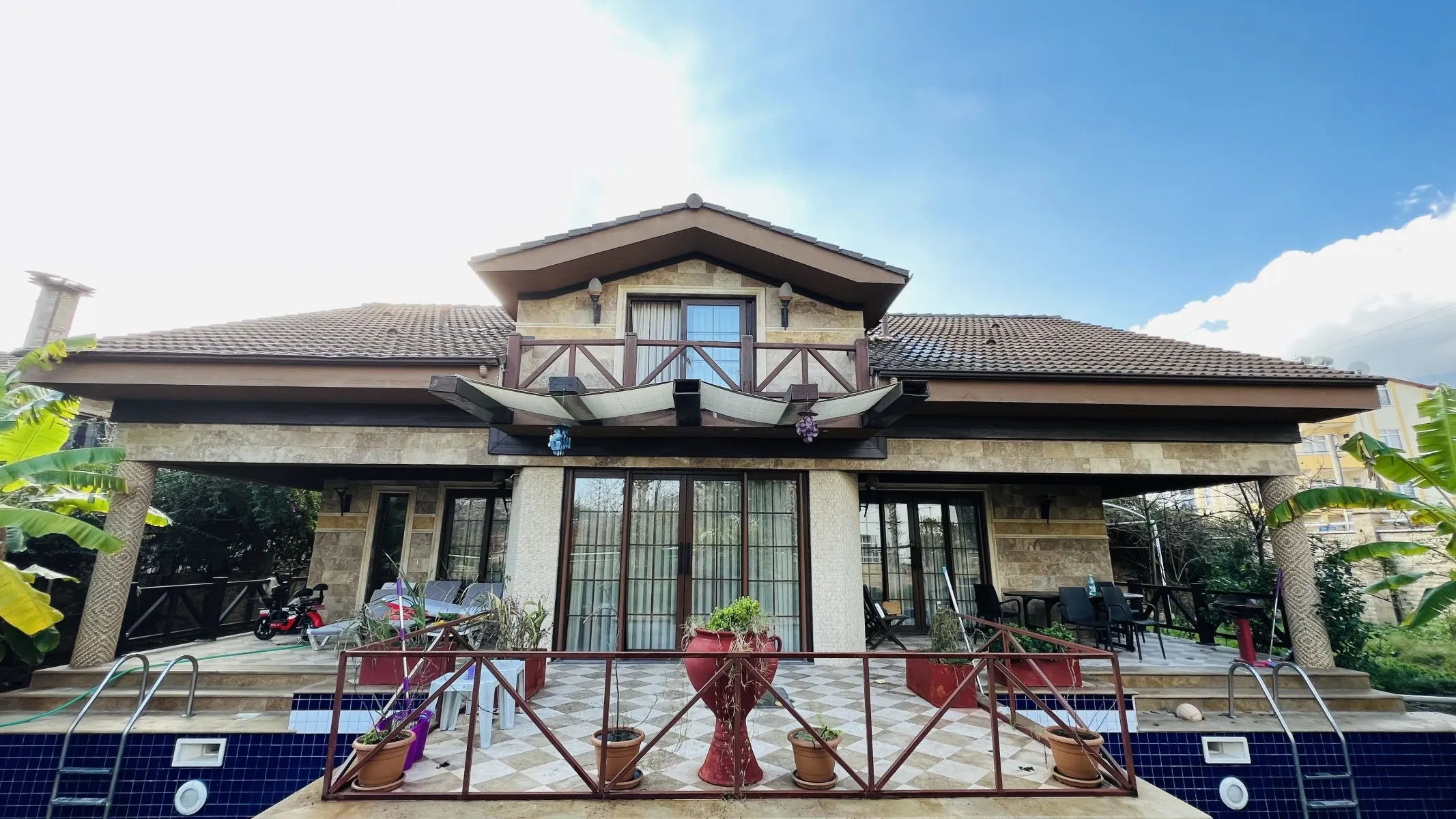 Luxury detached villa for sale in Kemer Arslanbucak area. 3+1 villa is fully furnished and offered for sale at no additional cost.3+1 villa for sale with a total area of 470 m² on a 795 m² plot of land.On the ground floor of the villa: open kitchen, living room, terrace overlooking the estate and the mountains.On the second floor of the villa: three bedrooms, each room has a separate bathroom.On the ground floor there is a relaxation area with a pool table, sauna, jacuzzi, fitness equipment. There is the possibility to open 3 additional rooms, each 30 m², on the lower floor.