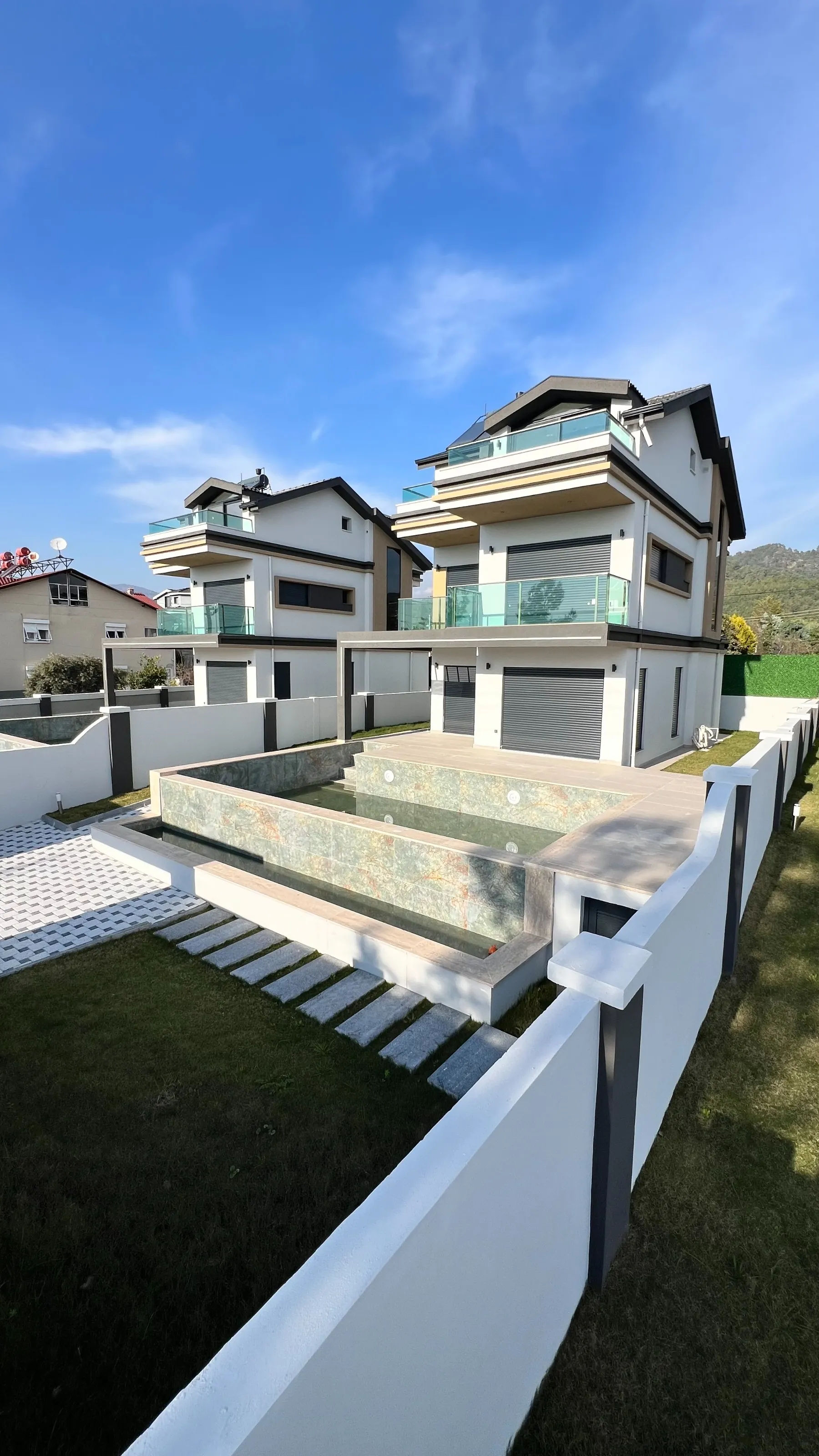 3 SIDES ROAD, 3 INDEPENDENT DETACHED SEA VIEW 4+1 VILLAS WITH INFINITY POOL ARE AVAILABLE FOR SALE1: floor heating2:all doors and windows with louvers3: all the joinery is aluminum4: our pools are infinity pool5: interior doors and kitchen cabinets lacquered6: car park with shutters7: floors and bathrooms 60x120 ceramic8: all rooms are en-suite9: built-in bathroomAND ALL MATERIALS ARE QUALITY BRAND AND FIRST CLASS.The villas will be delivered in August, at the stage of completion.Property FeaturesSea ViewParkingGuest RoomInterior FeaturesAir ConditioningParent's BathroomLaminant ParquetOpen KitchenBalconyShower CabinSea ViewParkingGuest RoomAir ConditioningParent's BathroomLaminant ParquetOpen KitchenBalconyShower Cabin
