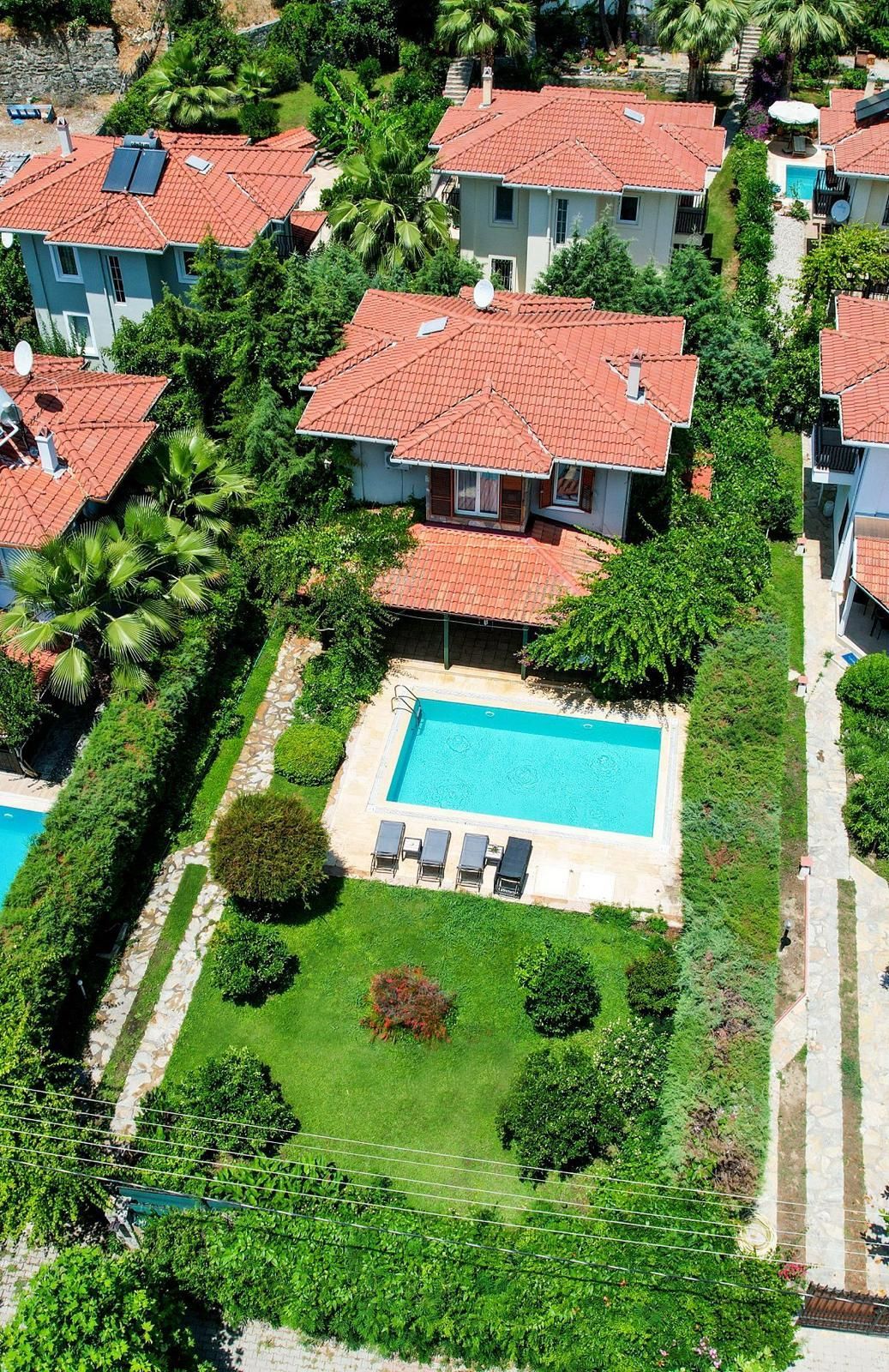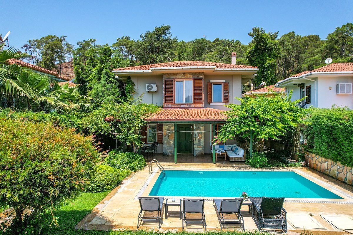 It is possible to make your dreams come true by taking initiative. Our amazing villa for sale, why not the house of your dreams!About VillaThis magnificent villa, which is only 2 minutes walking distance from the beach and shopping centers, winks at its buyer.Our villa, located on a 532 m2 independent plot, has 180 m2 gross and 150 m2 net size.There is an open kitchen, living room and toilet on the ground floor, 3 bedrooms (one with an en-suite bathroom) and 1 shared bathroom/WC on the upper floor.It has a 32 m2 private pool and a parking lot for 2 cars in its garden.Our villa for sale is furnished in country style.Contact us for this magnificent villa with a well-kept garden and a rustic look.About GöcekGöcek is very different from other holiday regions, especially with its silence and unspoiled nature. It has many islands and coves because it is located in the region where the Taurus Mountains end in the Mediterranean.Thanks to its natural breakers, Göcek has a safe sea like a pool and overcomes all the difficulties that both amateur and professional sailors may experience. It is known all over the world for the natural richness of the island and its bays.Göcek, which is the first stop on the blue cruise, has six marinas that host all boats. Since it is 22 km away from the International Dalaman Airport, air travel is more preferred.Göcek fascinates all its guests with its unique bays, islands, calmness and tourism sensitivity.Gocek bays and islands, which are considered a hidden paradise with their clean Mediterranean waters, lush pine forests and beaches, have made Gocek an indispensable route for sea lovers.Property Features24/7 SecurityParkingCafe / RestaurantInterior FeaturesAir ConditioningParent's BathroomLaminant ParquetOpen KitchenBalconyShower CabinExterior FeaturesWifiDigital Satellite SystemLocation AmenitiesClose to Shopping MallCentral LocationClose to Marina24/7 SecurityParkingCafe / RestaurantAir ConditioningParent's BathroomLaminant ParquetOpen KitchenBalconyShower CabinWifiDigital Satellite SystemClose to Shopping MallCentral LocationClose to Marina