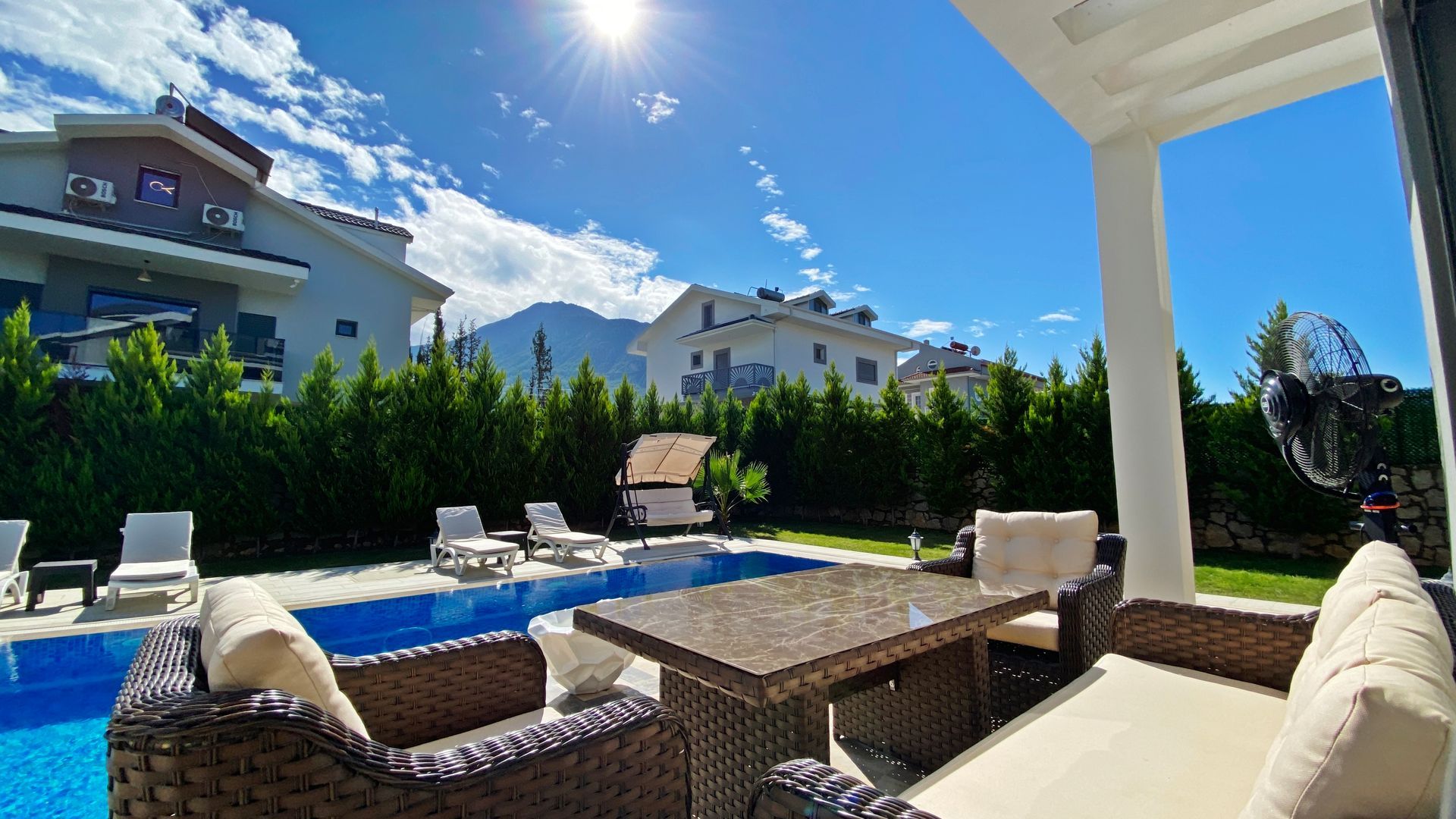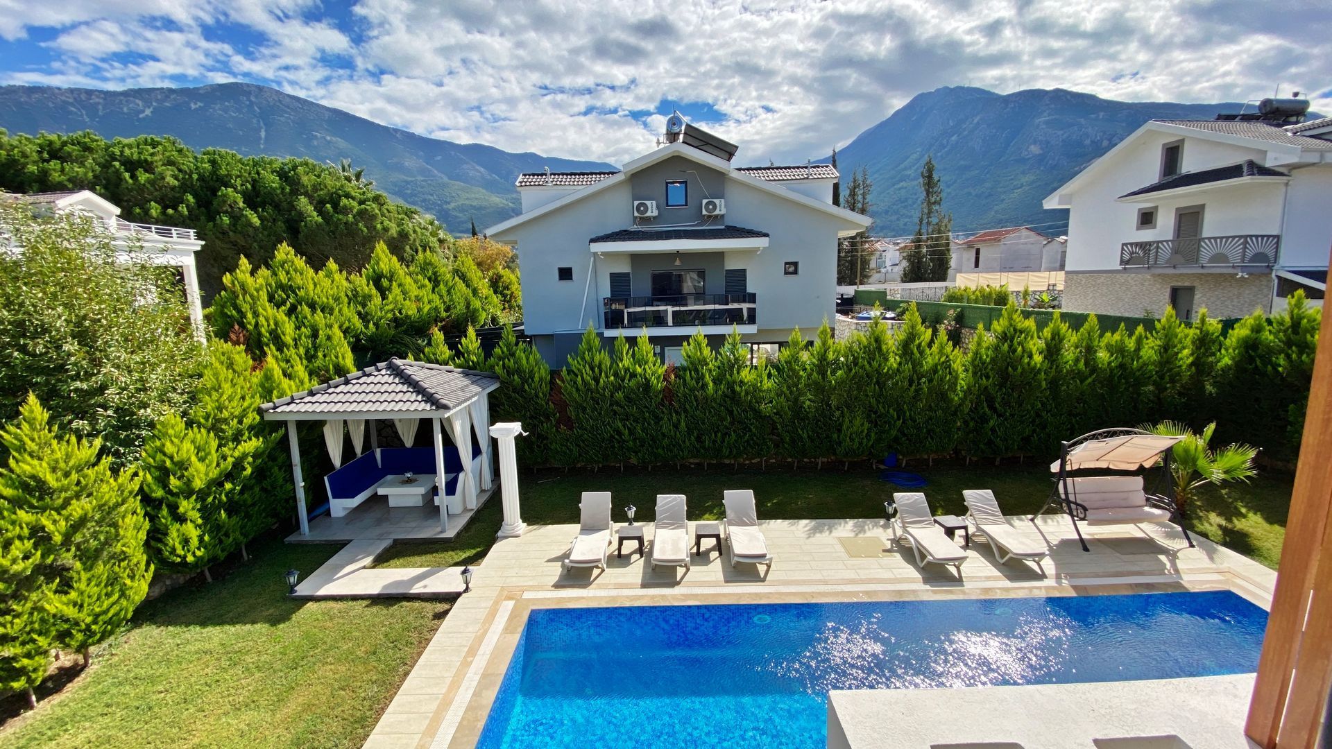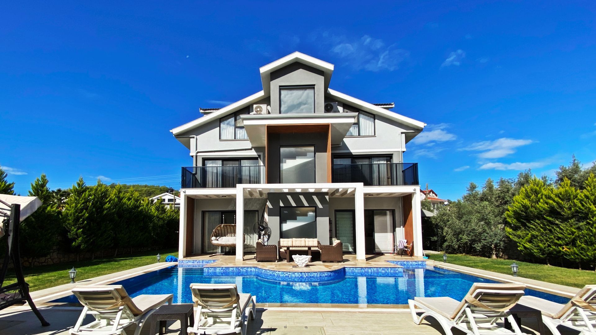 These stunning detached villas with 4 bedrooms, all with en-suite bathrooms, are located in hisarönü. It offers the peaceful life of the countryside, relaxing pine forests in hisarönü. Our above-average sized villas offer great value for your investment and are ideal for family vacations, permanent residence or earning a rental income.Hisaronu is a quiet village with many shops, restaurants, bars and cafes. Hisarönu, which has a very cool weather due to its location, offers a quiet, calm and peaceful environment in the summer months.If you want to see more places in the region, you can reach many places by traveling with your car for a very short time, or you can easily reach the famous Ölüdeniz beach or Fethiye with the minibuses that pass every 5 minutes during the season.Property Features24/7 SecurityParkingCafe / RestaurantNear the Historical PeninsulaInterior FeaturesAir ConditioningParent's BathroomLaminant ParquetOpen KitchenBalconyShower CabinExterior FeaturesWifiDigital Satellite SystemLocation AmenitiesForest ViewClose to Historical Peninsula24/7 SecurityParkingCafe / RestaurantNear the Historical PeninsulaAir ConditioningParent's BathroomLaminant ParquetOpen KitchenBalconyShower CabinWifiDigital Satellite SystemForest ViewClose to Historical Peninsula