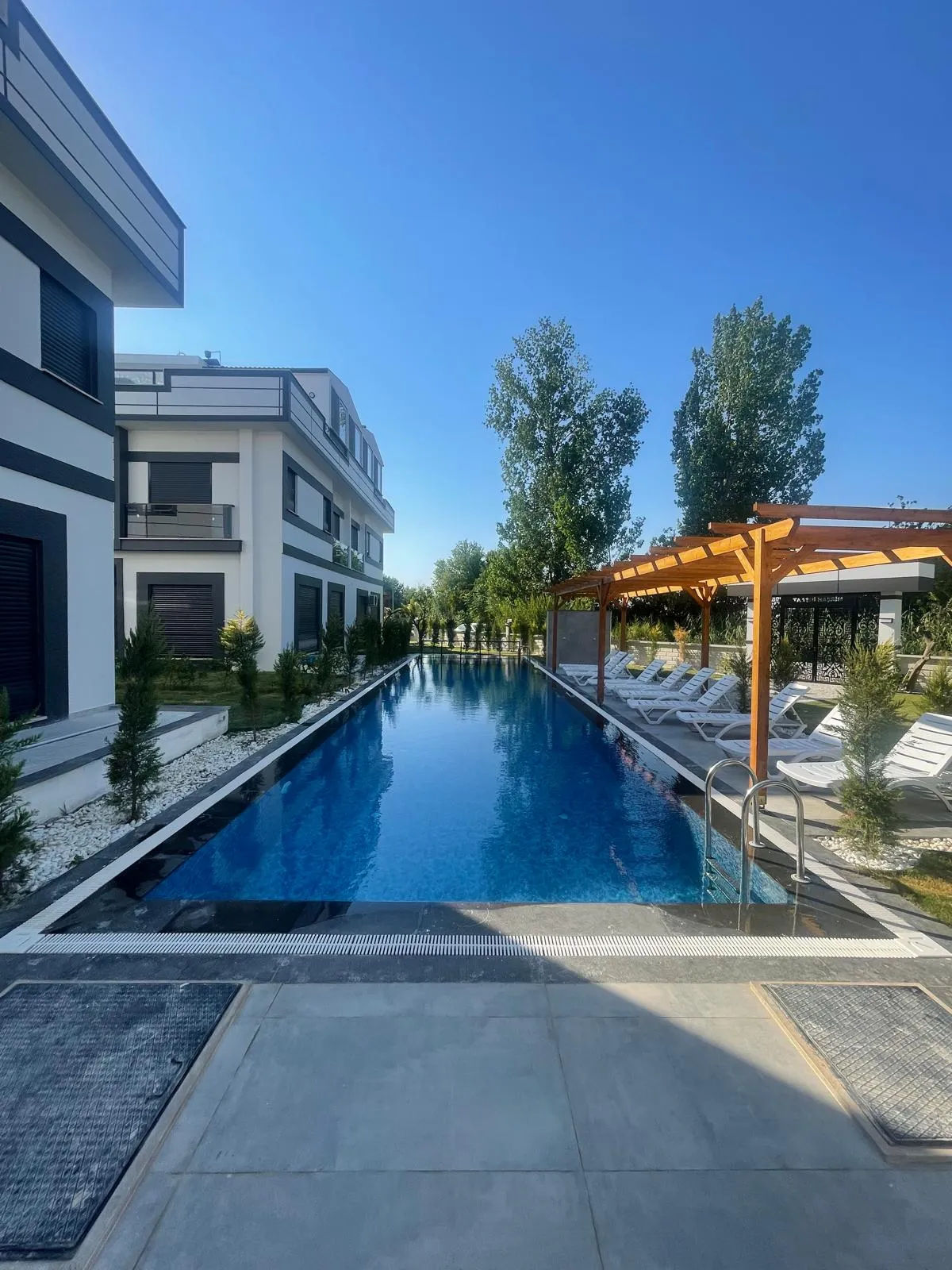 Discover this modern and luxurious triplex villa located in the sought-after Karaçalı neighborhood of Dalaman. Designed for comfort, security, and smart living, this property offers the perfect blend of functionality and elegance.Key Features:Remote-Controlled Smart Home SystemControl your air conditioning, TV, lighting, heat pump, and shutter systems remotelyLeak prevention system and protection against electrical faults for added peace of mindSecurity & SafetyAdvanced camera and alarm systemSite-wide CCTV surveillanceInterior HighlightsUnderfloor heating throughoutPremium 60x120 ceramic flooring2 modern bathroomsLuxury wooden-clad jacuzzi with 18 jets and double headrestsHilton-style sinks and high-quality ECA faucetsTop-tier bathroom accessories and shower cabinsStylish FinishesElegant lacquered interior doorsBuilt-in cloakroom and kitchen cabinetsDurable and aesthetic Cimstone kitchen countertopBosch black-glass built-in kitchen appliance set (oven, hob, extractor)Outdoor LivingSpacious private gardenAdult and children’s swimming poolsRooftop terrace with built-in BBQ and sinkAdditional AdvantagesPrivate entranceTriplex layout for optimal space and privacyLocated in a secure and peaceful residential areaThis exceptional villa offers a refined lifestyle with all the comforts of modern living. Ideal as a permanent residence, vacation home, or investment opportunity.