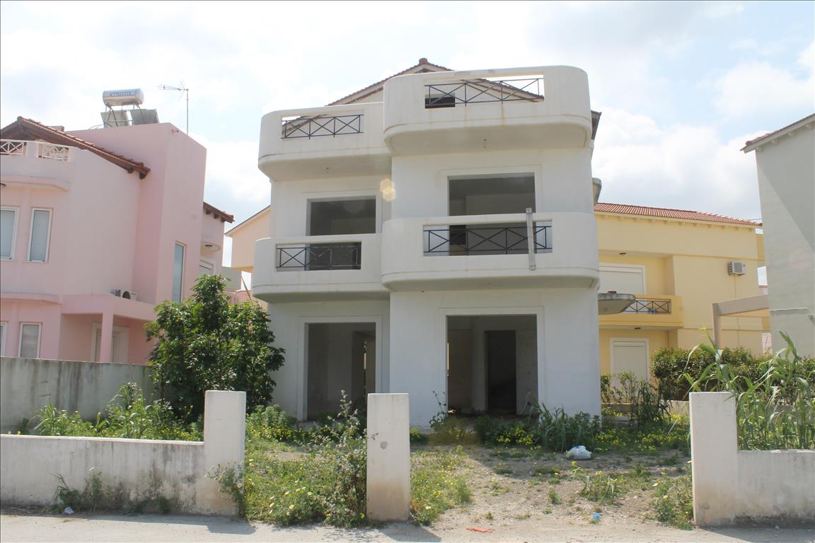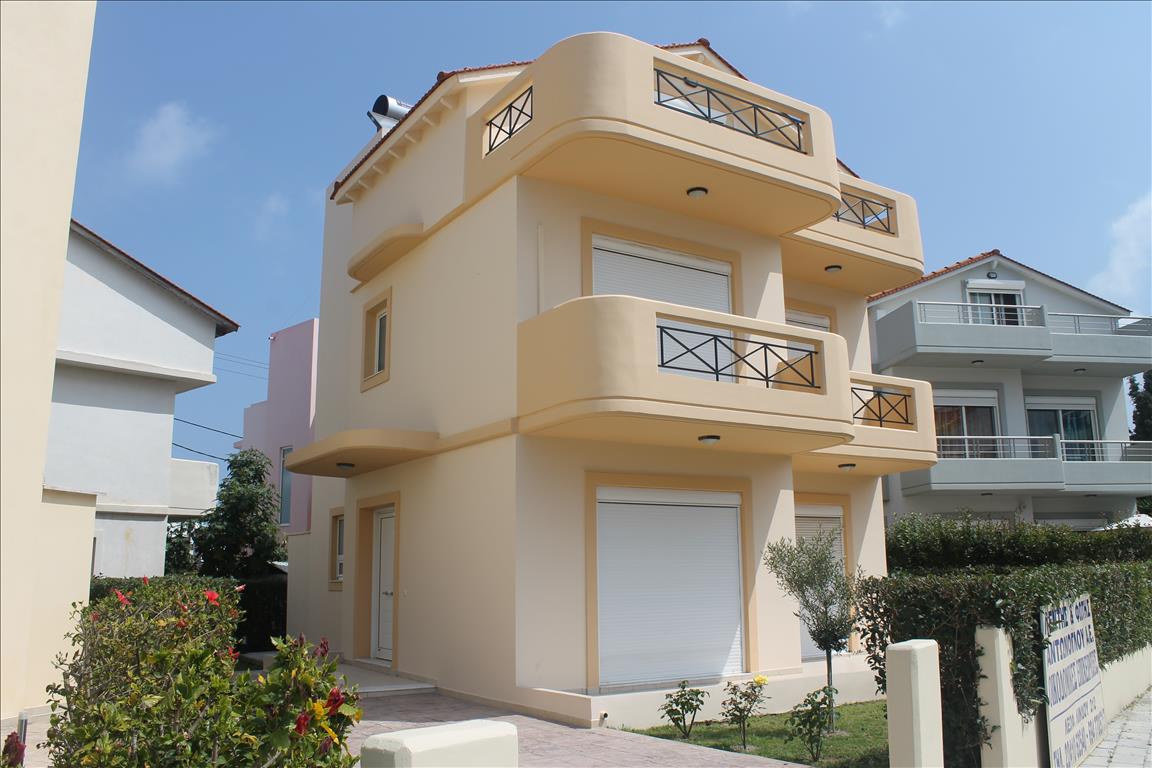 Sale house with an area of 157 sqm on the island of Rhodes. The townhouse is on 3 levels. The first floor consists of living room with kitchen, one bathroom. The second floor consists of 3 bedrooms, one bathroom. The third floor consists of one bedroom, one shower room. The Windows offer views of the sea. The object has solar panels for water heating, heating. To the property belongs a Parking space, garden.