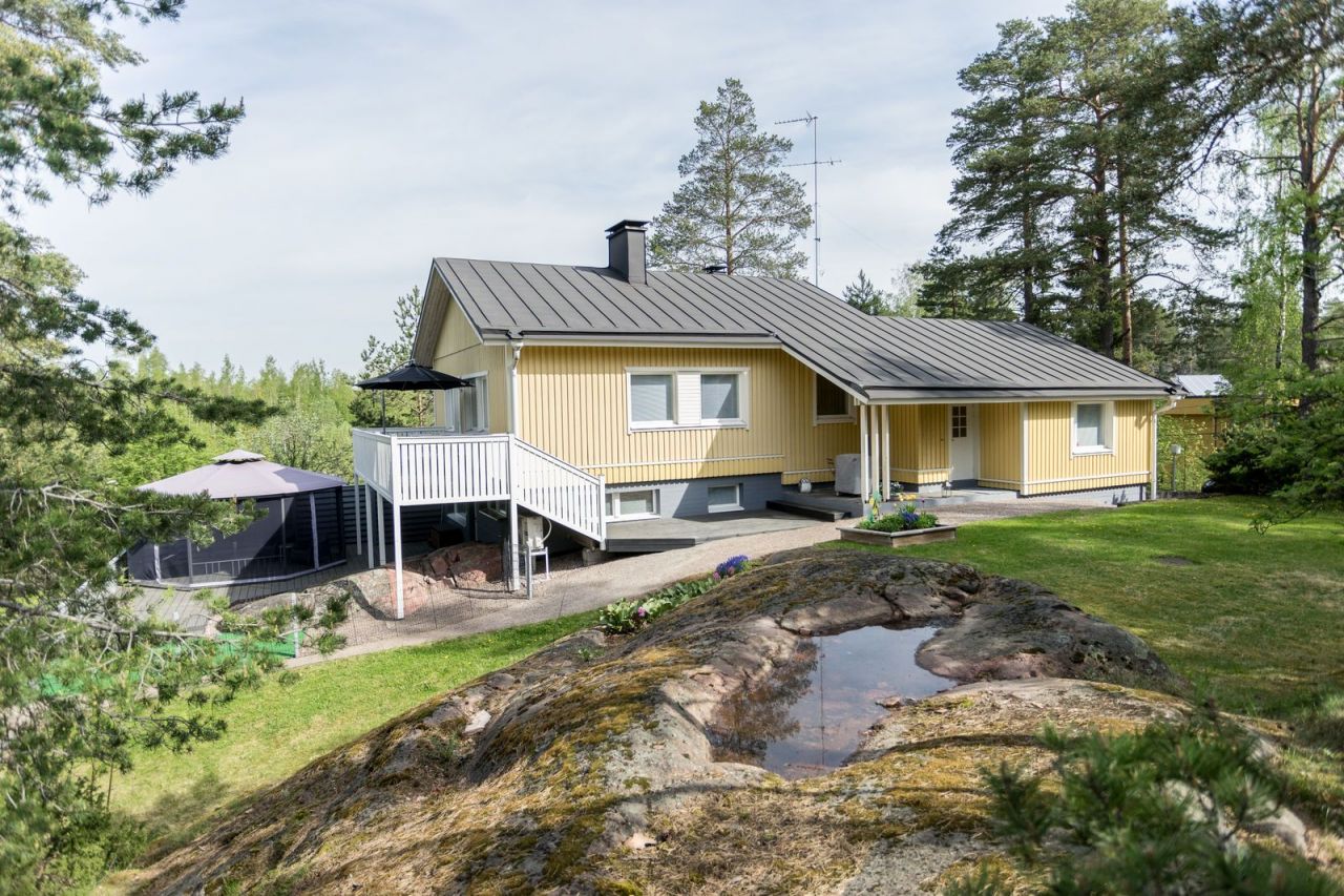 Продается просторный дом в отличном месте. Этот дом был отремонтирован в 2004 году и в 2019 году была произведена смена использования. Здание раньше было дачей, которая постепенно расширялась. Прочный каркас дома это железобетонный каркас. Простота использования была руководящим принципом в дизайне помещений. Гостиная и кухня имеют общий камин и печь для выпечки. Так же внизу есть дровяная сауна и открытый камин с другой стороны стены. В гостиной много окон, есть выход на большую верхнюю террасу для утреннего кофе. В главной спальне отдельная великолепная гардеробная. Много места для хранения одежды и большое окно, достаточно света. Очень просторная хозяйственная комната. Большая сауна, душевая комната с двумя душами. На нижнем этаже есть отдельный туалет и подсобное помещение, которое также служит небольшой кладовой. Собственный земельный участок 1 287 m². Годовой налог на недвижимость около 1000 €. Годовое потребление электроэнергии около 30 000 кВт. Электрические радиаторы как основное тепло дома + стоит воздушный тепловой насос. Муниципальное водоснабжение. Услуги: автобусная остановка около 300 м, заправка Neste 650 м, магазин Lidl 680 м, медицинский центр около 3 км, школа 600 м. Спортивный парк 3,2 км. Подробная информация по телефону ,. Также у нас есть своя страница в Instagram: Агентство имеет лицензию № 2013/PU1026A на право ведения риэлторской деятельности на территории всей страны и государственный сертификат самой надежной компании и доверия. Мы осуществляем юридическое сопровождение и полный комплекс услуг в течение всего процесса купли-продажи объекта недвижимости, начиная с выбора нужного варианта и заканчивая регистрацией с дальнейшим обслуживанием. Нам доступна вся база Финской недвижимости и мы подберем для Вас нужный объект. ОФОРМЛЕНИЕ ВИДА НА ЖИТЕЛЬСТВО, СРОЧНЫЙ ПЕРЕЕЗД И ПОЛНОЕ НАШЕ СОПРОВОЖДЕНИЕ БИЗНЕСА ДО ГАРАНТИРОВАННОГО ПОЛУЧЕНИЯ ВАМИ И ВСЕМИ ЧЛЕНАМИ СЕМЬИ ПМЖ / ГРАЖДАНСТВА НА ОСНОВАНИИ БИЗНЕС ИММИГРАЦИИ!!!