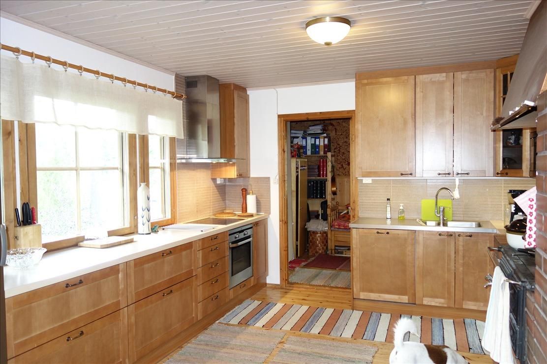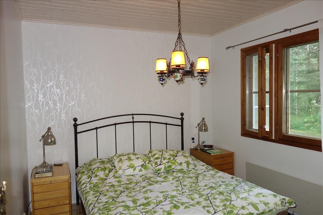 for Sale a cozy one-storey house with all city communications in heinävesi, with an area of 135m2 and built in 1984. Annual property tax is 286€. Renovated house in good condition, its forest area is more of 5.58 ha, you can have your firewood for heating (fireplace and stove), as well the house is heated by electricity. The house has 5 rooms (4спальни), kitchen (fridge, freezer - 2016, induction hob, extractor, microwave, dishwasher - 2010), wood-heated sauna, bathroom, separate toilet, shower, cupboards, washing machine, heated floors, basement and street log barn. There is a garage for two cars.