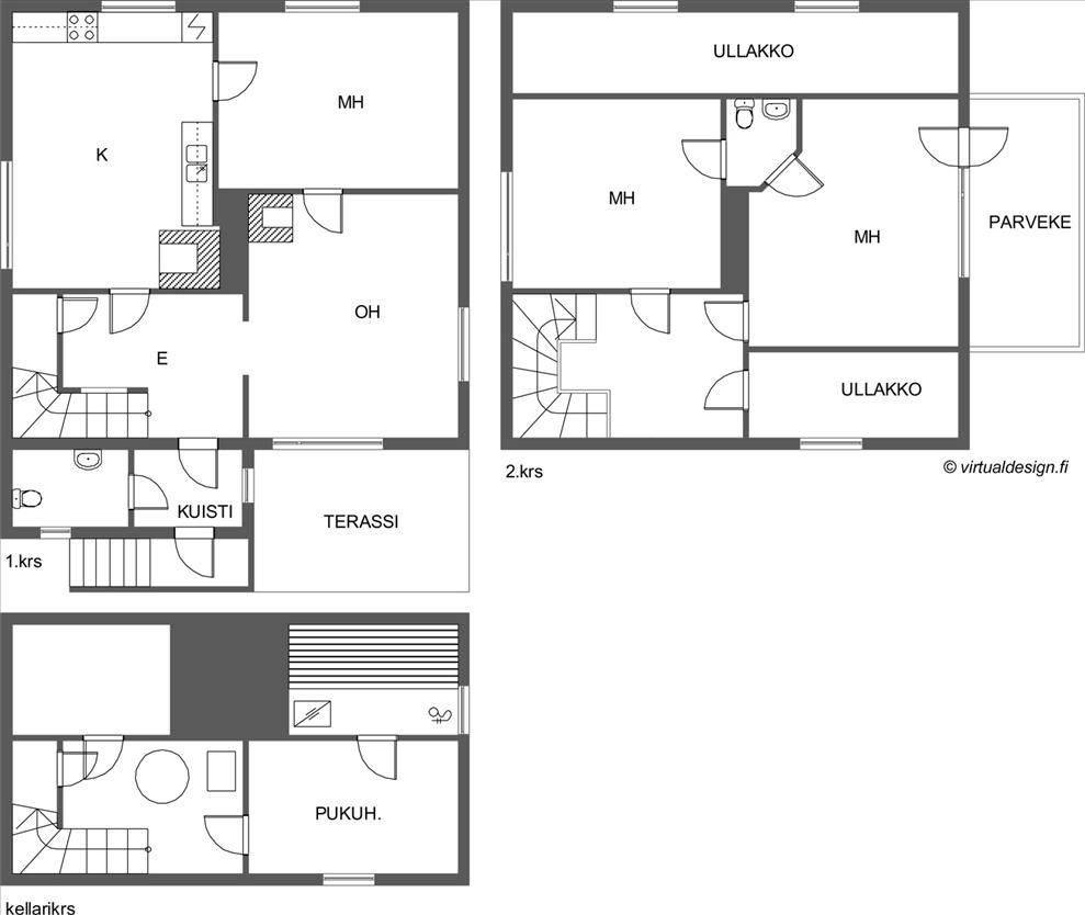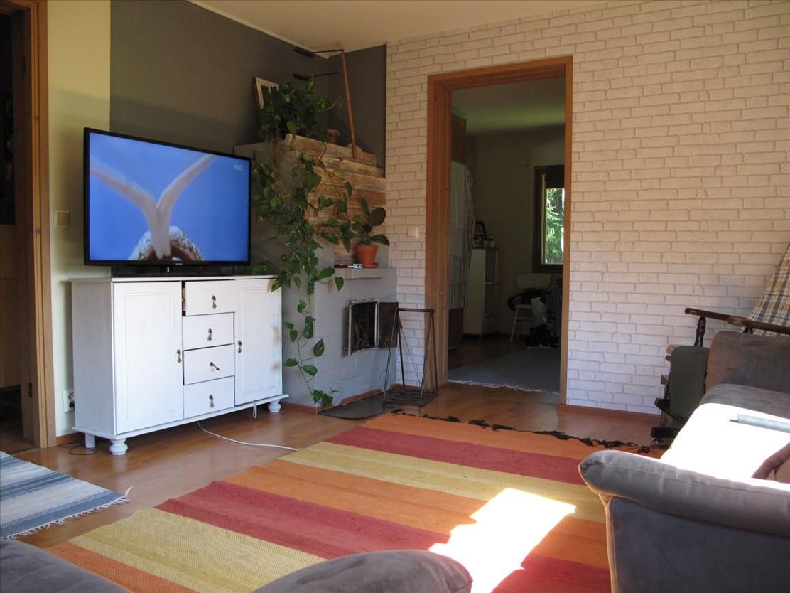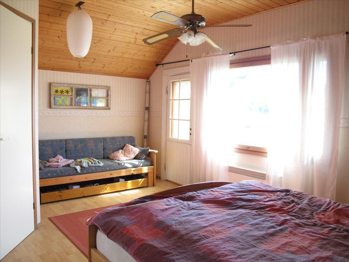 In the basement sauna and shower. Two separate toilet and washing machine connection. The upper floor has two bedrooms and a balcony. Your plot of 2 000m2, secluded and cozy patio, a utility room/shed and carport.