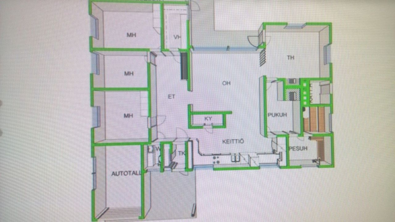 Просторный, полностью отремонтированный дом на своём участке 910,0 м2. В доме есть сауна, прачечная и каминная комната. Дом находится в спокойном, зелёном районе в 3 км от центра г. Куусанкоски, в 1 км от гольф клуба и в 2 км от спорткомплекса с бассейном.