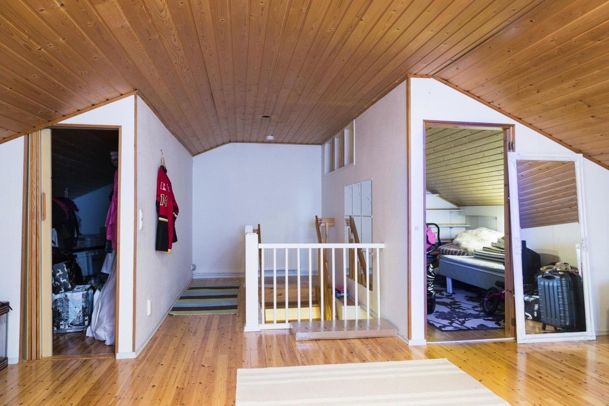 for Sale a comfortable semi-detached house in the suburbs and Pori, with an area of 132m2 and built in 1978. Not far from schools and close to all amenities, renovated in 2000-ies. On the first floor there are two bedrooms, a bright living room with access to covered terrace, very large kitchen (fridge/freezer, dishwasher, hob, extractor), WC, shower room and sauna as well as a car canopy and storage. Upper floor: one large room and a dressing room. Bright and spacious house, in exchange you can offer the property or paritalo in Pori. Your plot of 900m2.
