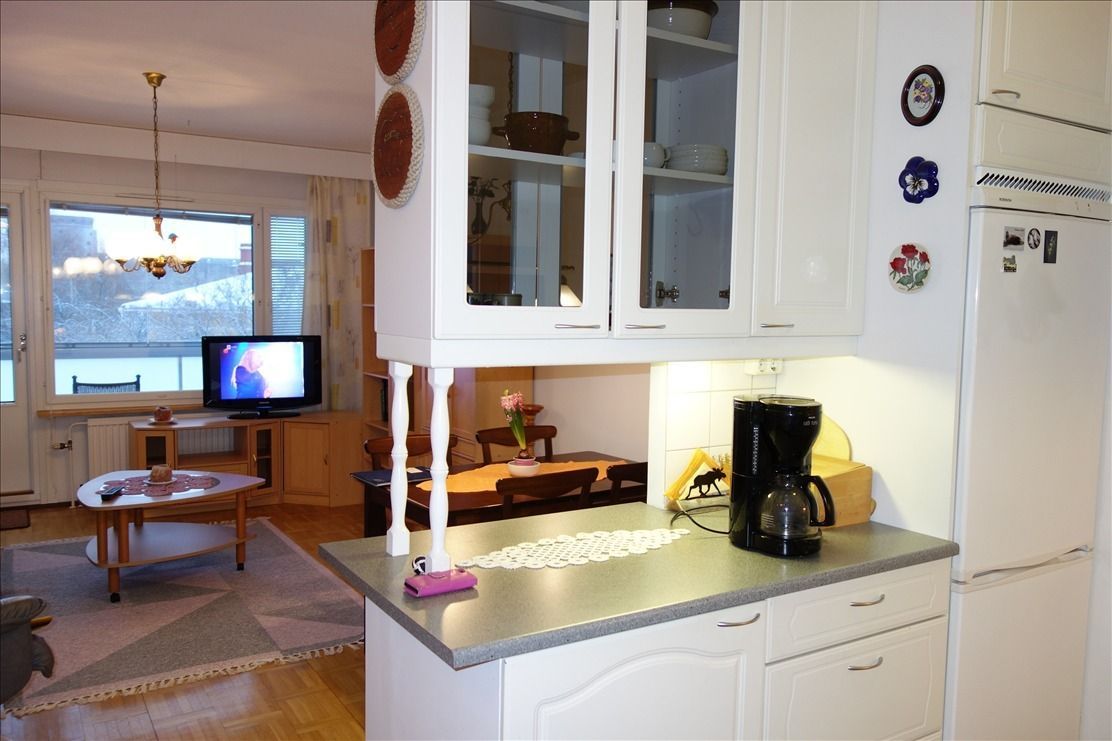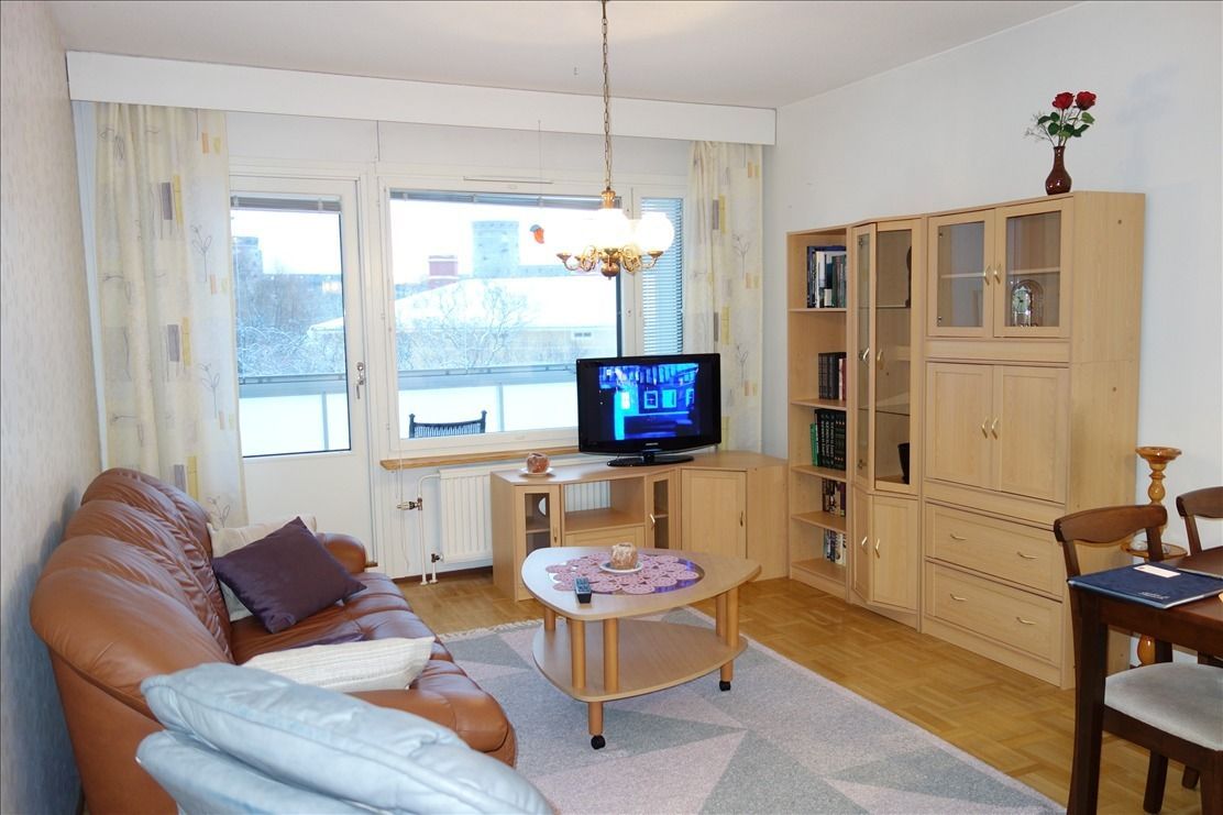 apartment for Sale with one bedroom, glazed balcony with views of the Castle in Central Savonlinna, on the high ground floor, 45 m2 year built 1975. Monthly utility payments are - 233,10 € + 25 € for water and car 40 €. DH home. Kitchen: fridge with freezer, electric hob, extractor, microwave. Balcony, heated floors in the bathroom. The house has a common sauna, drying room, attic space for storage. All services are within a radius of 1km.