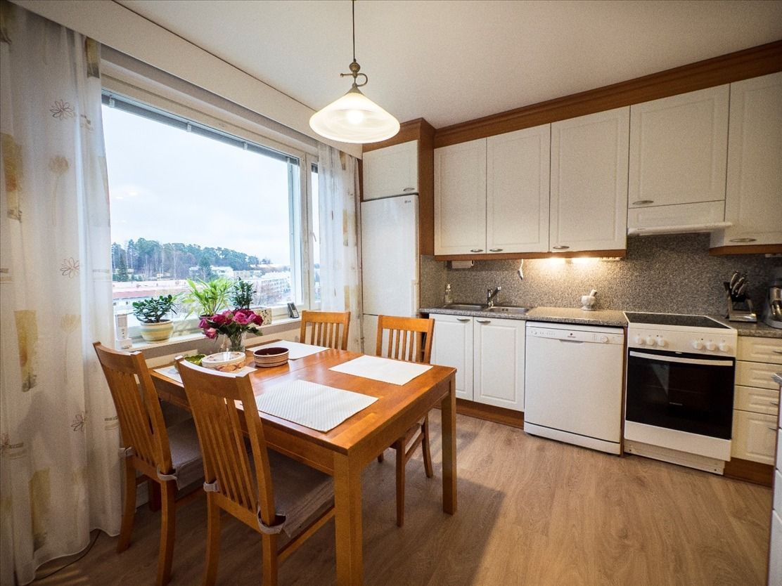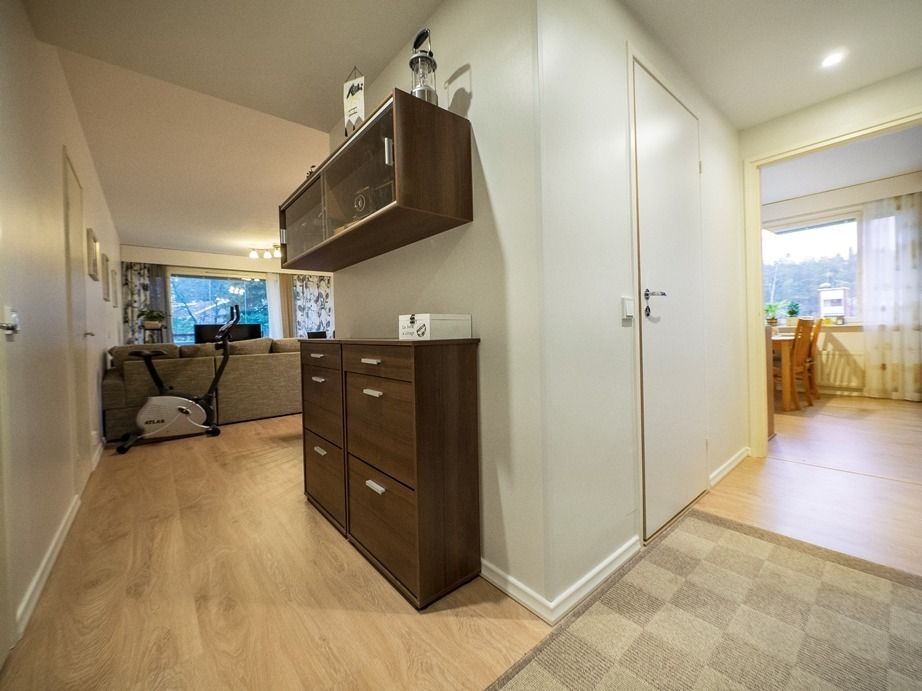 Продается трехкомнатная квартира в отреставрированном здании с лифтом на 3 этаже в городе Савонлинна, площадью 68m² и год постройки 1968. Ежемесячные коммунальные платежи составляют - 241,23€ + вода по счетчику. В квартире гостиная, две спальни, кухня после ремонта (холодильник/морозильник, керамическая плита - 2015 год, вытяжка с активированным углем, посудомоечная машина 2009 год, шкафы), застекленный балкон, ванная комната, отдельный туалет, душ, подключение стиральной машины, стационарные светильники, гардеробная комната. К услугам жильцов дома, в цокольном этаже есть сауна, прачечная, комната для сушки, прохладный погреб для хранения продуктов и пространство для хранения вещей и спорт инвентаря. Все услуги центра города находятся в шаговой доступности, почтовое отделение 250м, школа 400м, автобусная остановка 300м.