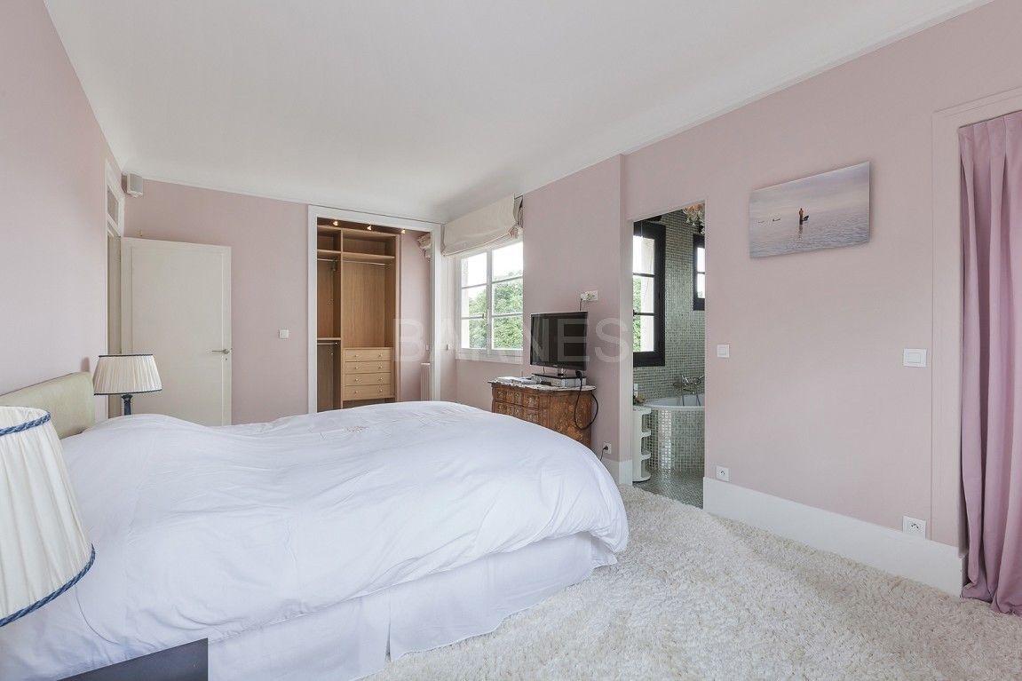 ПАРИЖ 14 - ОБСЕРВАТОРИЯ | Построенный в 1929 году возле Порт-Ройал Робертом Маллетом Стивенсом, это 152 кв.м. Дуплекс, расположен на 2-м и 3-м этаже классифицированного здания в стиле ар-деко. Эта мастерская, где жил художник Тамара Лемпицка, предлагает впечатляющий объем (6-метровые потолки). Он освещен огромным потолком в крыше, и витражи, подписанные Жаном Пруве, прекрасно сохранились, как предполагала Адриенна Горска, сестра художника, стали свидетелями престижного прошлого. Квартира состоит из прихожей, кухни, выходящей на сады сестер святого Иосифа из Клюни, запасного туалета и огромной мастерской художника с видом на сад. На верхнем этаже мы можем найти дымовую комнату в мезонине и две спальни с ванной комнатой и туалетом. Все эти номера находятся в отличном состоянии, с большим количеством света и спокойствием. Здание было включено в книгу исторических памятников с 1984 года.