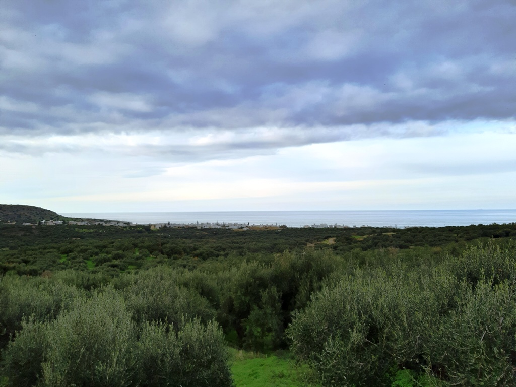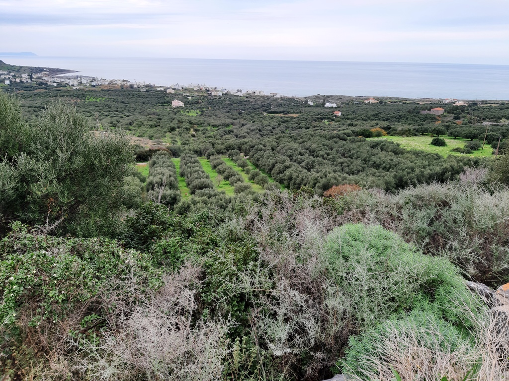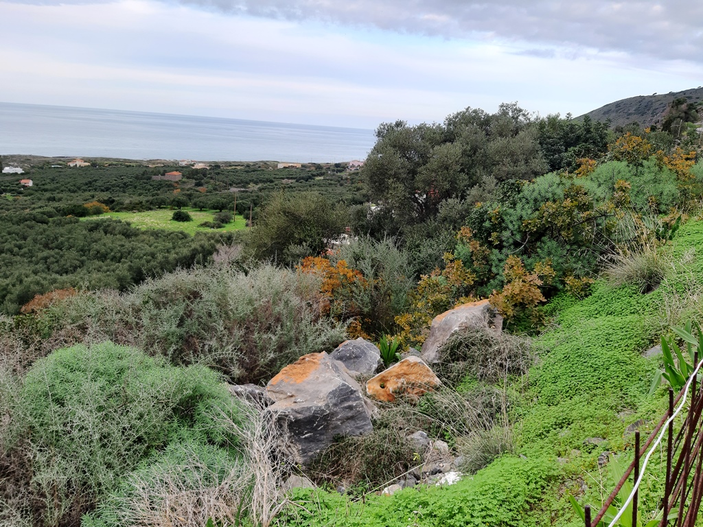 Land for sale area of 1,116 sq. m. on the island of Crete. On-site water, electricity, with possibility to build 100 sqm. Has a magnificent view of the sea, the mountains and the city.