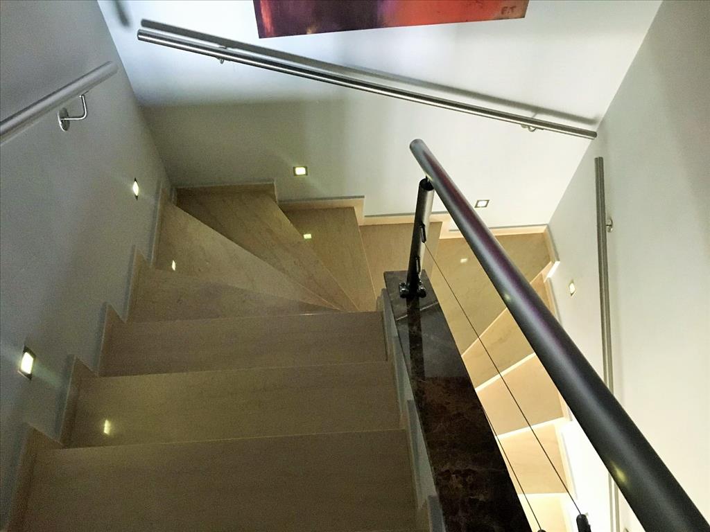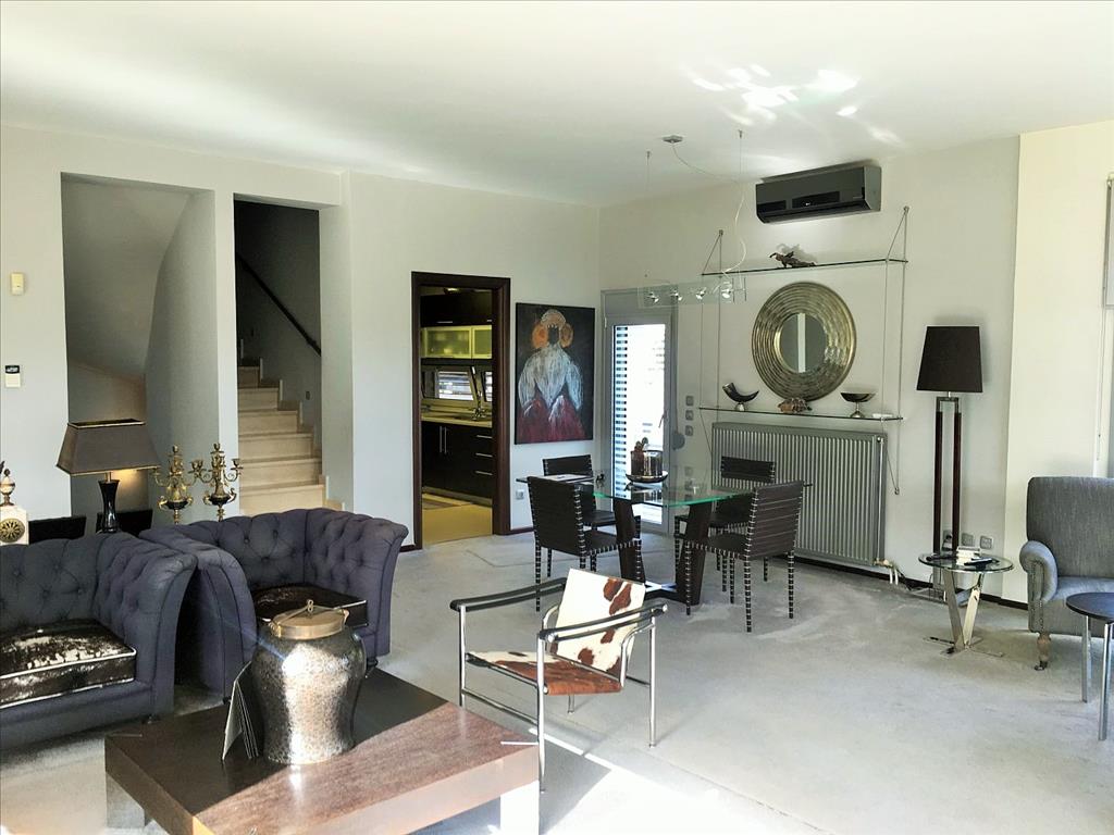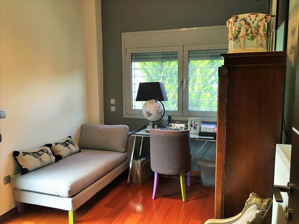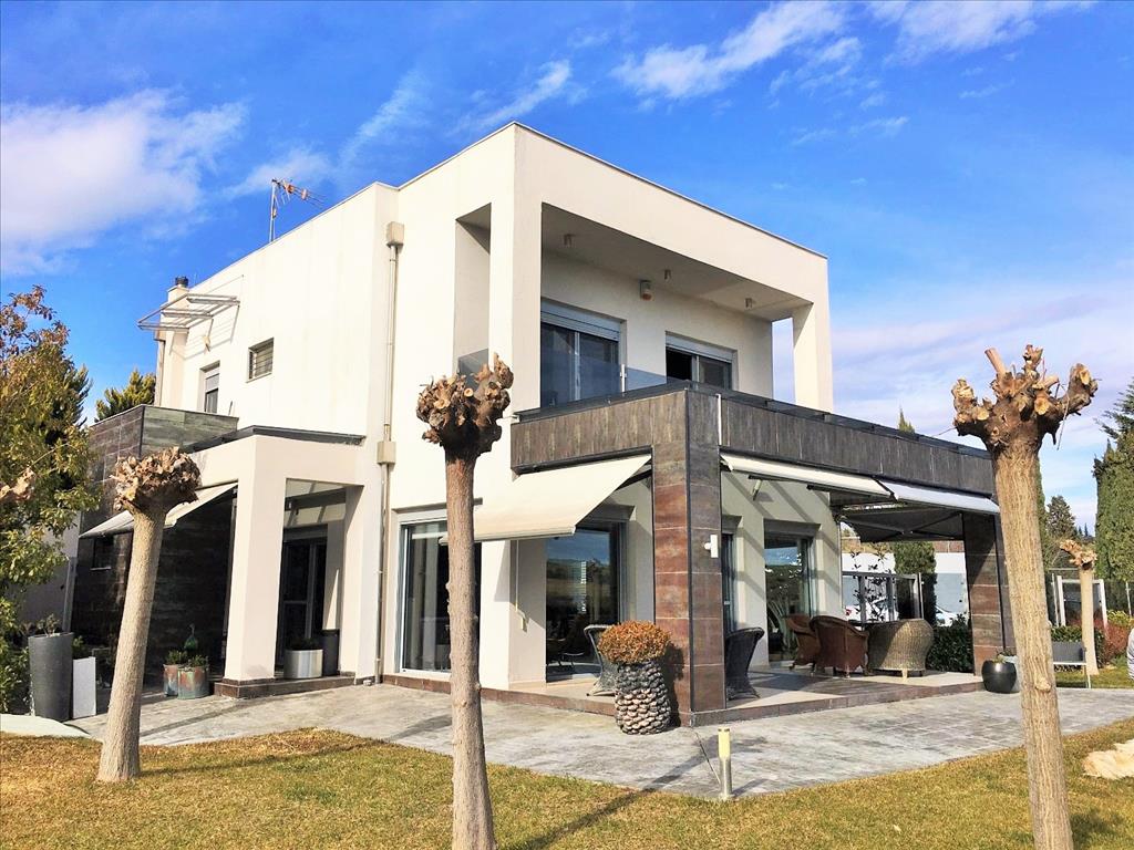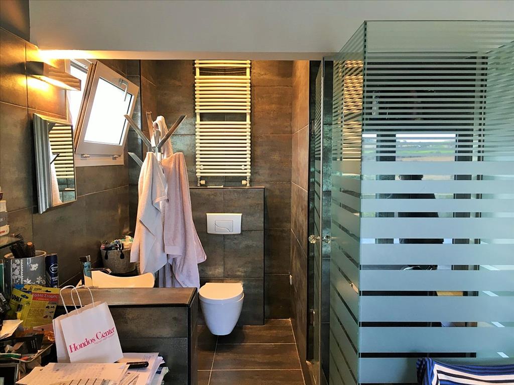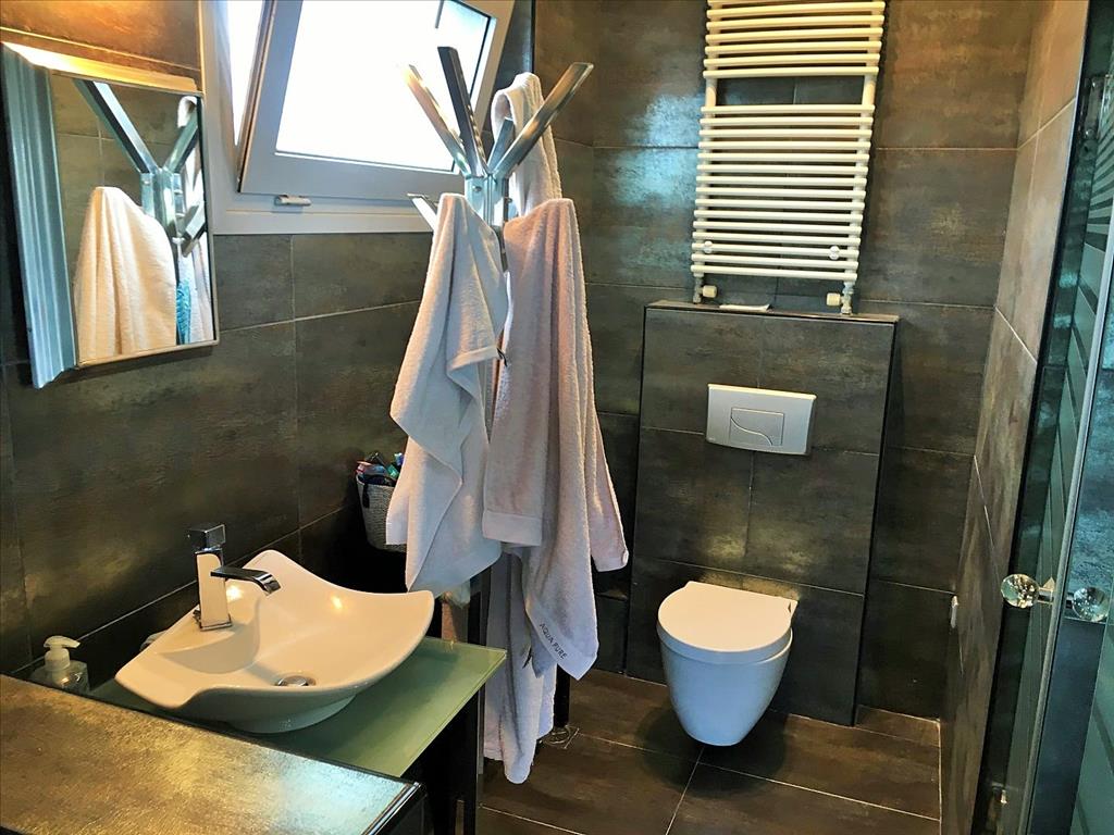 For sale 3-storey Villa of 170 square meters in the suburbs of Thessaloniki. The basement consists of a living room, one bathroom, one pantry, one walk-in closet, Jacuzzi. The first floor consists of a living room, one kitchen, one bathroom. The second floor consists of 3 bedrooms, 2 bathrooms, one storeroom. The Villa has a corner location. The Windows offer a magnificent view of the mountains, the forest. The object has a fireplace, air conditioning, awnings, barbecue, heating. The object has an alarm system. To the property belongs a Parking space, garden.