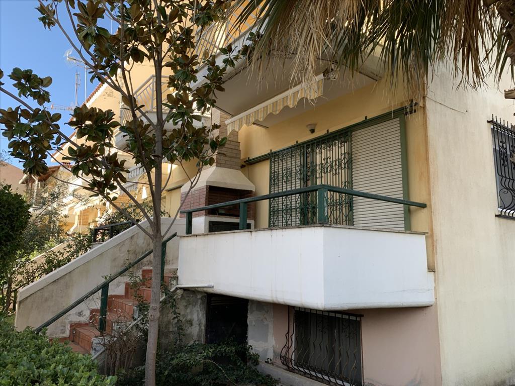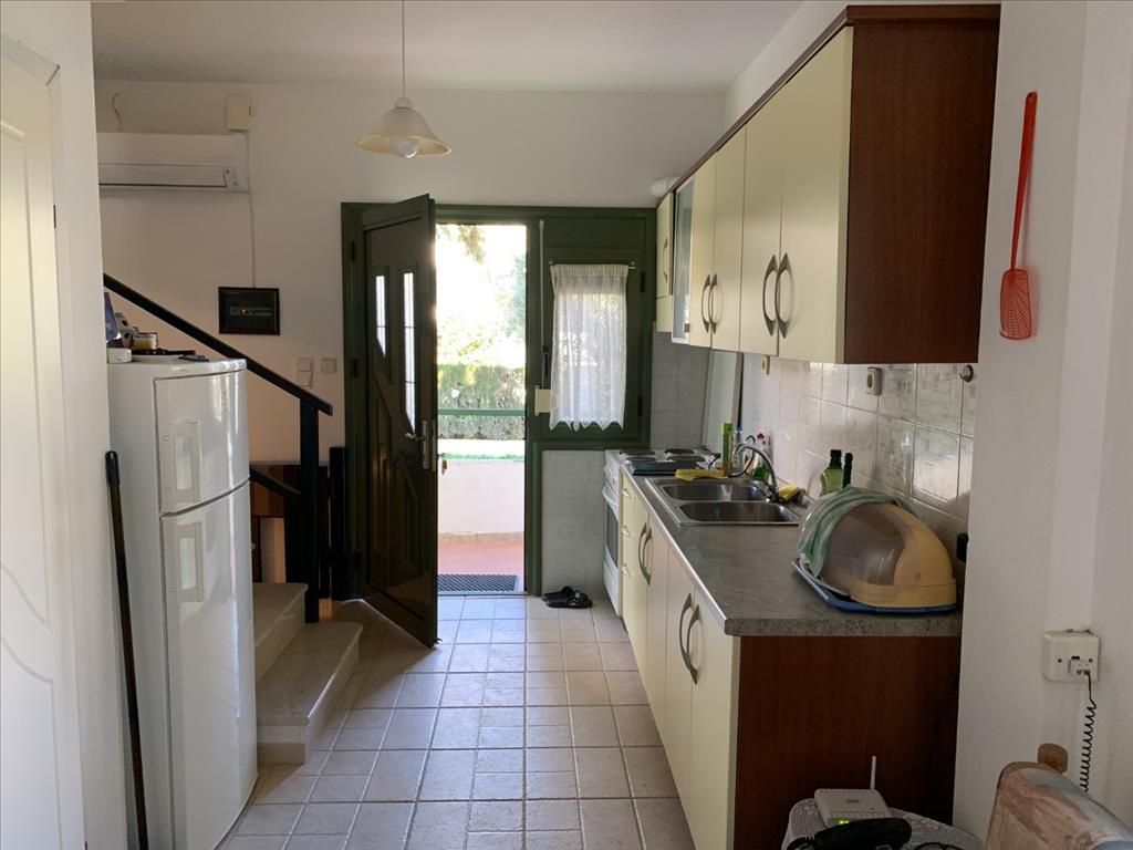 House for sale area of 75 sqm in Sithonia, Halkidiki, Greece The townhouse is on 3 levels. The basement consists of 2 bedrooms. The first floor consists of living room with kitchen, one bathroom. The second floor consists of 2 bedrooms, one shower room. The townhouse enjoys a corner location. The object has air conditioning, awnings, barbecue area. The property is sold with furniture. To the property belongs a garden.