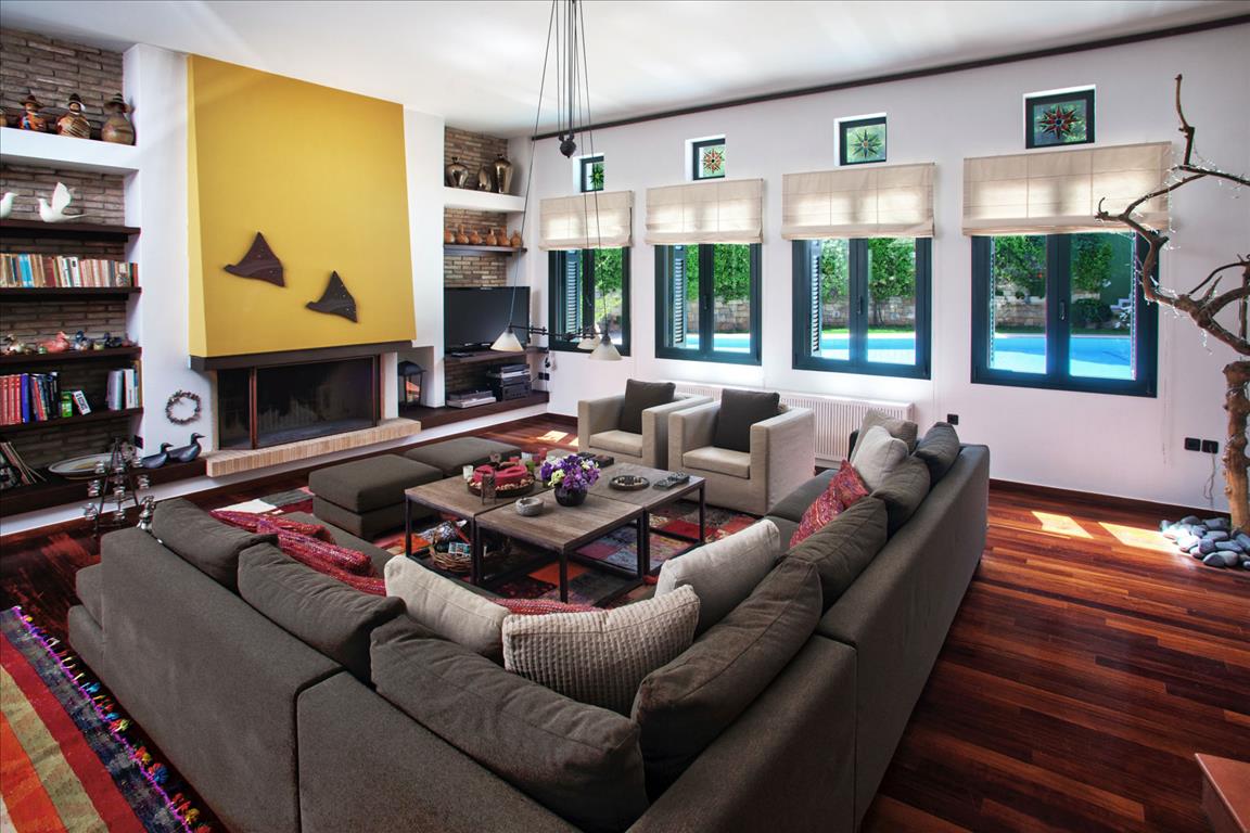 For sale 1-storey Villa with an area of 505 sq. m in Athens. The Villa consists of 5 bedrooms, living room with kitchen, living room, one kitchen, 5 bathrooms, one office, one gym, one game room, one dressing room. The object has a fireplace. The object has an alarm system. To the property belongs a Parking place, garden, garage. The Villa is located near Peania