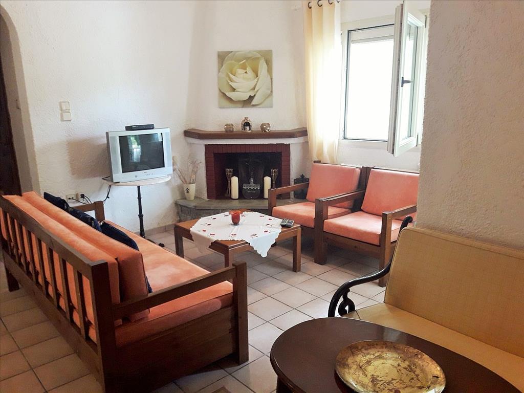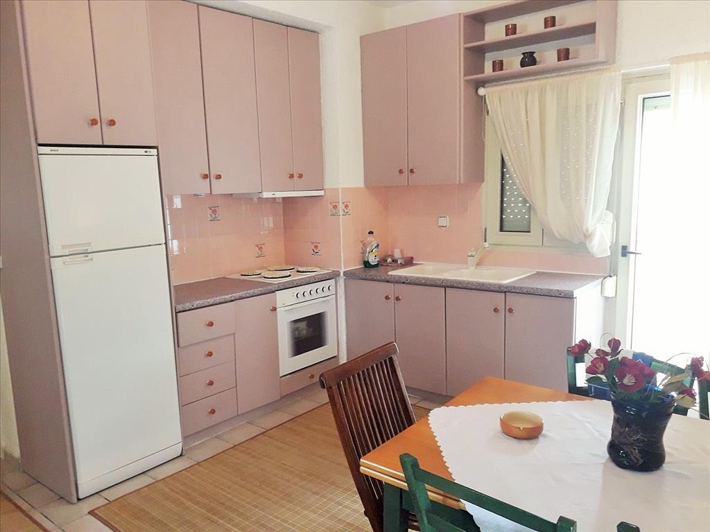 Apartment for sale 75 sqm on the Kassandra Peninsula, Halkidiki, Greece The apartment is located on the ground floor and consists of 2 bedrooms, living room with kitchen, one shower room, one bathroom. The Windows offer views of the mountains, the forest. The object has a fireplace, air-conditioner, tents, heating. The property is sold with furniture. To the property belongs a Parking space, garden. The owners of the communal pool on site.