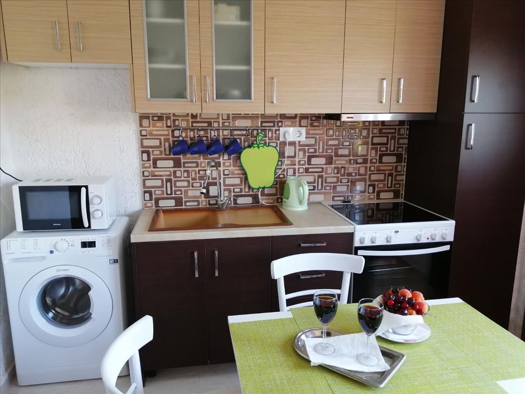 For sale apartment of 30 sqm in Kassandra, Halkidiki, Greece The apartment is located on the second floor and consists of one bedroom, living room with kitchen, one shower room. The object has solar panels for water heating, air conditioning. The property is sold with furniture.