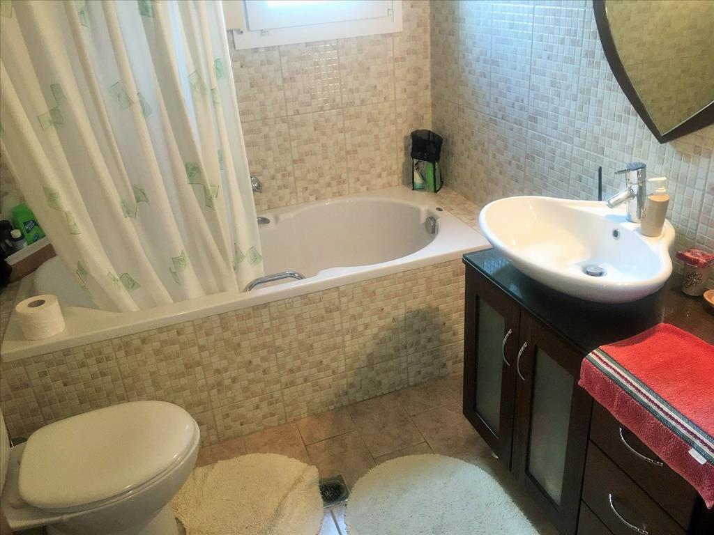 For sale 2-storey cottage with an area of 167 sq m in the suburbs of Thessaloniki. The first floor consists of 2 storerooms. The second floor consists of 3 bedrooms, living room, one kitchen, 2 bathrooms, one bathroom, 2 storerooms, Jacuzzi. The Windows offer a magnificent view of the mountains, the forest. The object has solar panels for water heating, fireplace, air conditioning, awnings, barbecue, heating. The property is sold with furniture. The object has an alarm system. To the property belongs a Parking place, garden, garage.