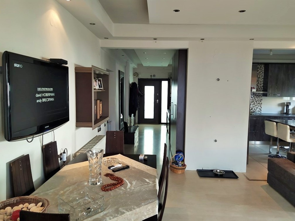For sale apartment of 120 square meters in Thessaloniki. The apartment is located on the second floor and consists of 3 bedrooms, living room with kitchen, one bathroom. The apartment has a corner location. The Windows offer views of the sea, the mountains and the city. The object has solar panels for water heating, air conditioning, heating. To the property belongs a Parking space. The apartment is located in the district of polichni.