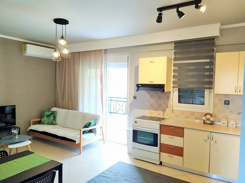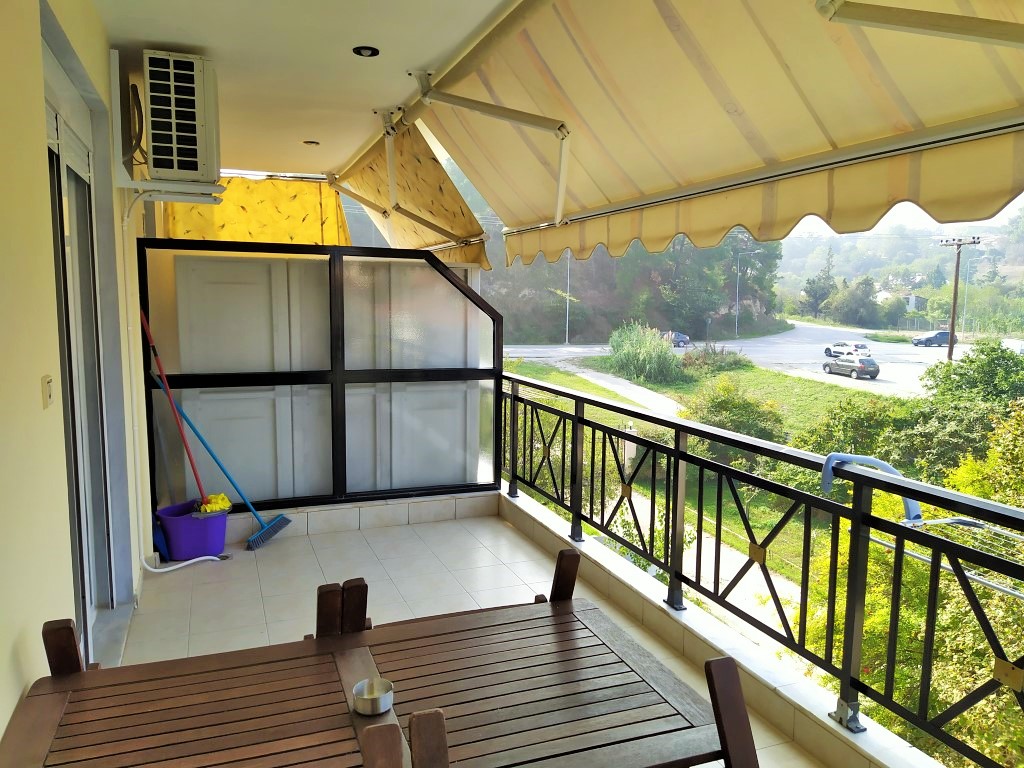 For sale apartment of 73 square meters in the suburbs of Thessaloniki. The apartment is located on the third floor and consists of 2 bedrooms, living room with kitchen, one shower room. The Windows offer views of the mountains, the forest. The object has air conditioning, awnings, barbecue, heating. The building is an Elevator. To the property belongs a Parking space, garden.
