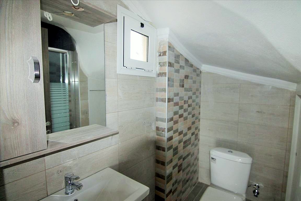 For sale 2-storey cottage with an area of 117 sqm in Sithonia, Halkidiki, Greece The first floor consists of living room with kitchen, one shower room. The second floor consists of 3 bedrooms, one shower room. The Windows offer views of the city. The object has solar panels for water heating, fireplace, air conditioning, heating. To the property belongs a garden.