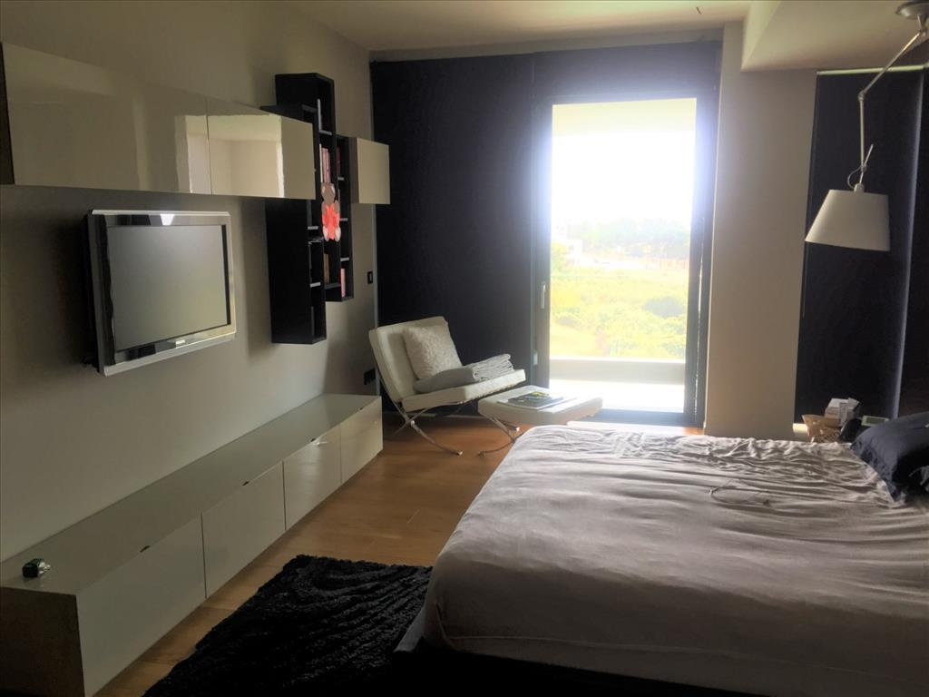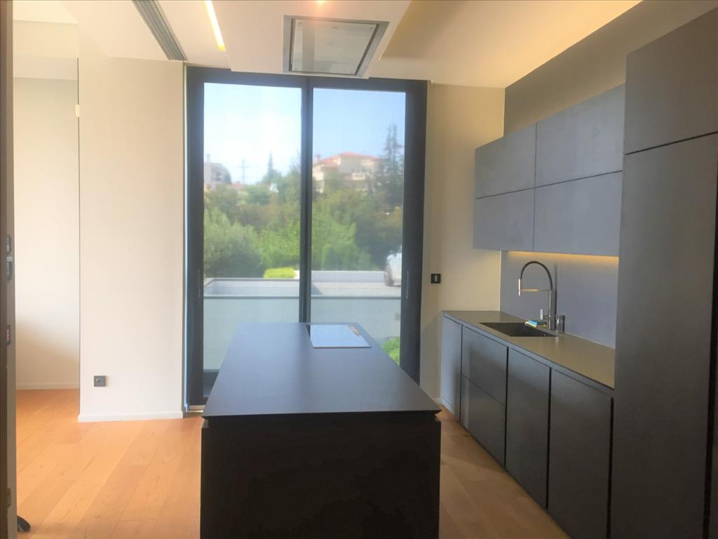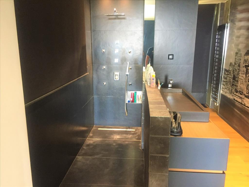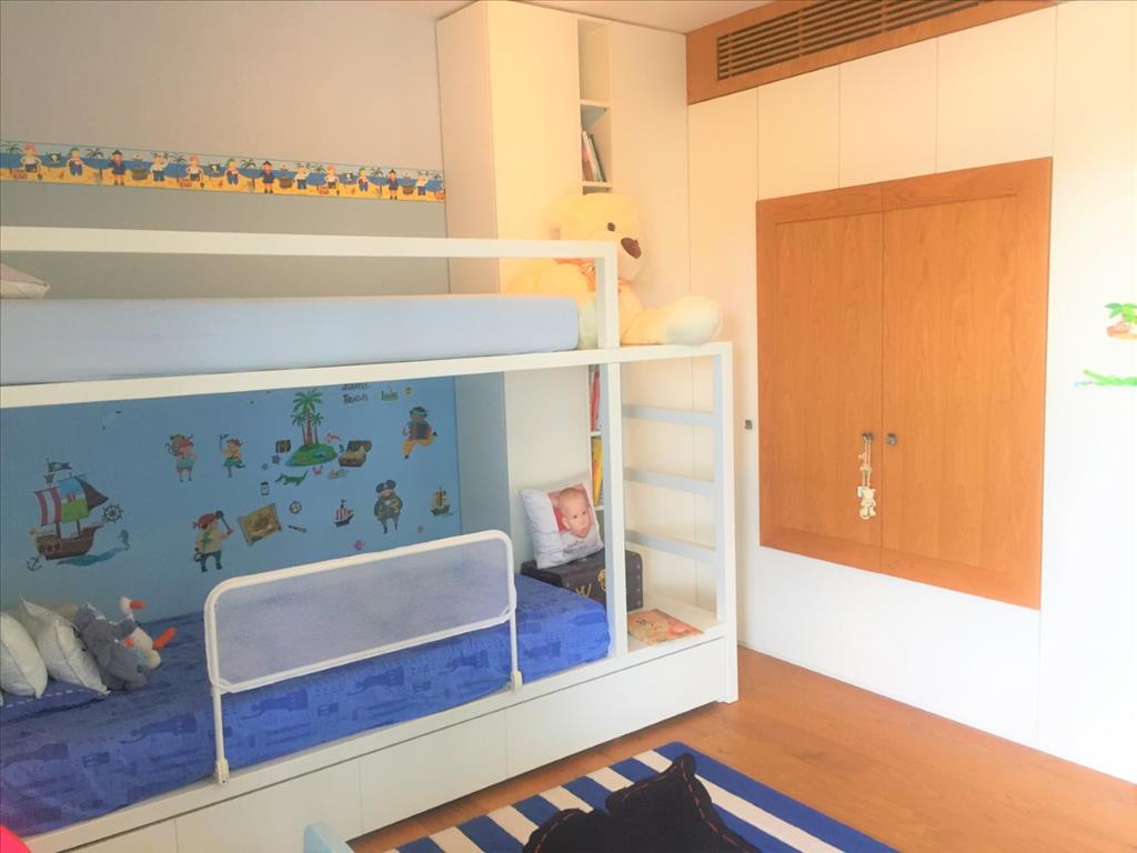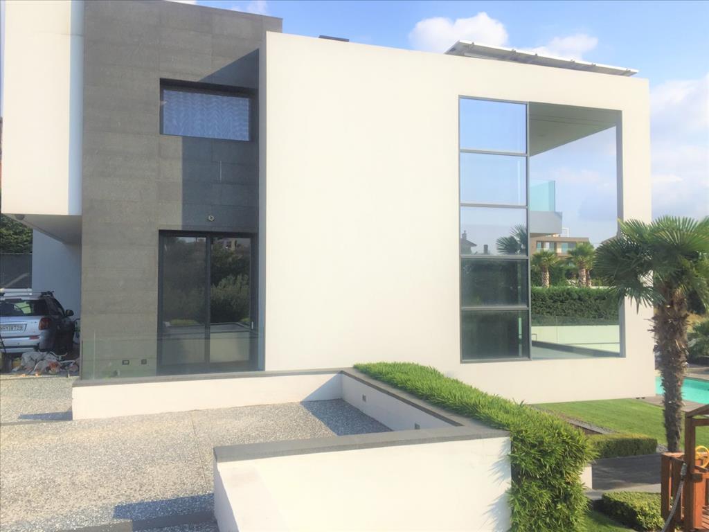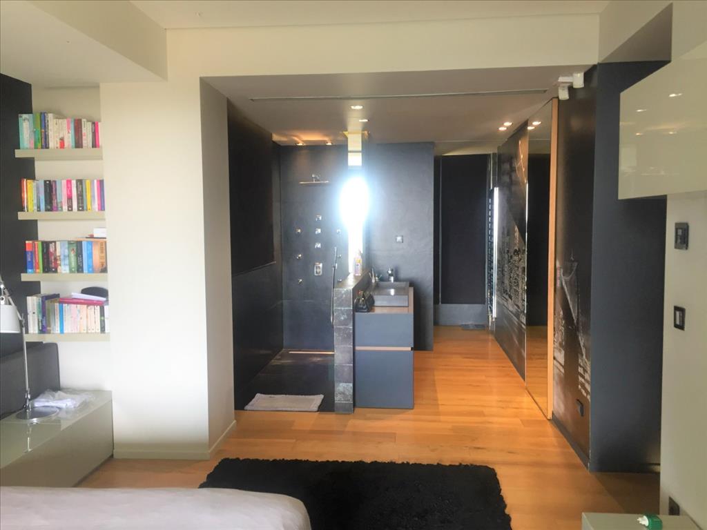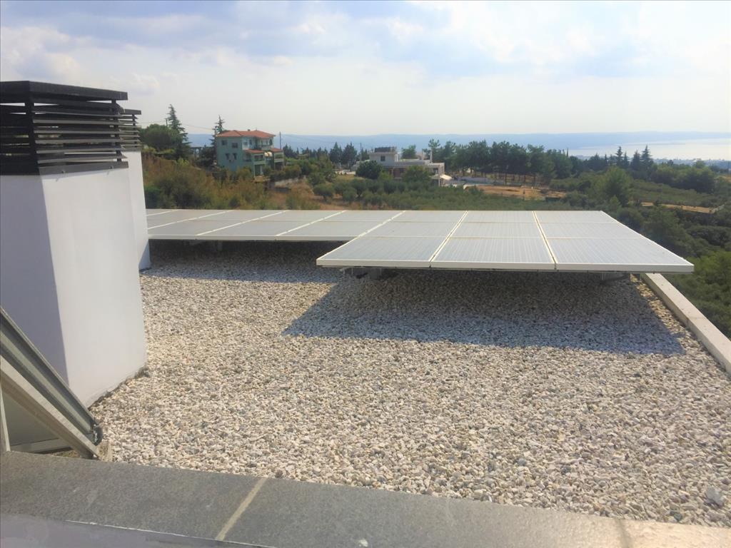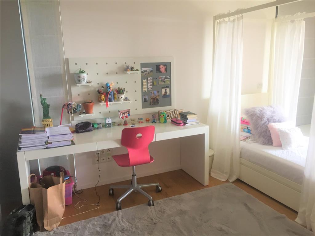 For sale 3-storey Villa of 400 sq m in Thessaloniki. The first floor consists of 2 bedrooms, living room with kitchen, 2 bathrooms, one storeroom. The second floor consists of living room with kitchen, one shower room. The third floor consists of 3 bedrooms, one bathroom, one shower room, one dressing room. The Windows offer a magnificent view of the sea, the mountains, the city, the forest. The object has solar panels for water heating, fireplace, air conditioning, heating. The object has an alarm system. To the property belongs a Parking space, garden. The on-site swimming pool personal use. The cottage is situated in the heart of Panorama.