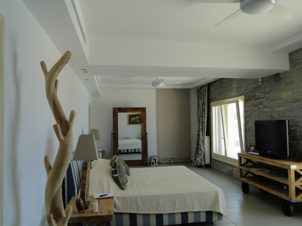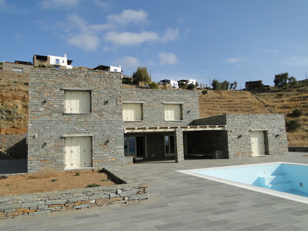 For sale 3-storey Villa with an area of 1000 sq. m in the Cyclades region. The basement consists of 3 bedrooms, 3 living rooms with kitchen, 3 kitchens, 3 bathrooms, 2 storerooms. The first floor consists of 2 bedrooms, living room with kitchen, living room, one kitchen, 2 bathrooms. The second floor consists of 3 bedrooms, 3 bathrooms, one pantry. The Villa has a corner location. The Windows offer a magnificent view of the sea. The object has solar panels for water heating, air conditioning, barbecue area. The property is sold with furniture. The object has an alarm system. To the property belongs a garage. The on-site swimming pool personal use. The Villa is located on the island of Kea. On the ground floor there are three separate guest apartments with own shower, bedroom, kitchen and living room. The Villa is suitable for residence, for lease.