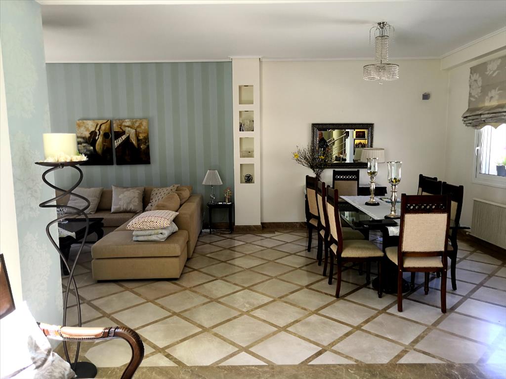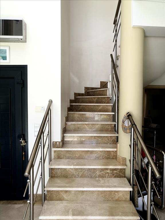 For sale 3-storey Villa with an area of 380 square meters in the attic. The basement consists of one bedroom, living room with kitchen, one bathroom, one pantry, one in the playroom. The first floor consists of living room with kitchen, one kitchen, one office. The second floor consists of 3 bedrooms, 2 bathrooms. The Villa has a corner location. The Windows offer views of the mountains and the city. The object has a fireplace, air conditioning, barbecue, heating. The building is an Elevator. The object has an alarm system. To the property belongs a Parking place, garden, garage. The Villa is located in the area of MARKOPOULO.