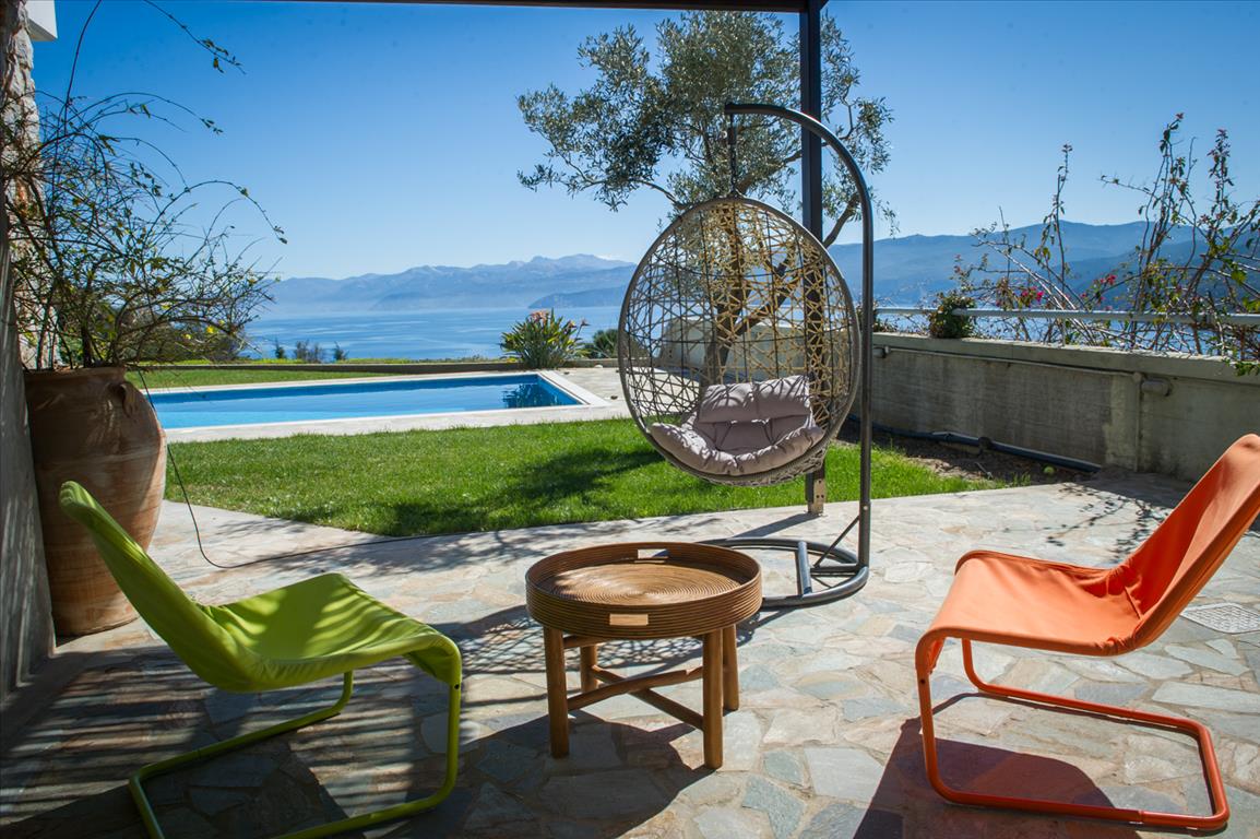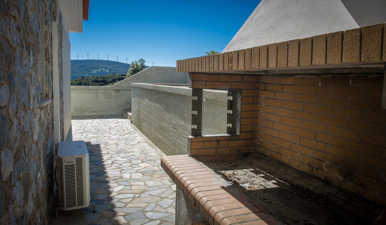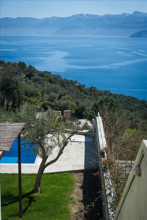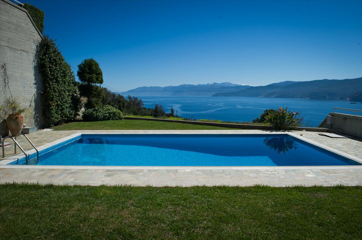 For sale 2-storey Villa of 150 sqm on the island of Evia. The first floor consists of one bedroom, living room with kitchen, one shower room. The second floor consists of 3 bedrooms, one bathroom. The Windows offer a magnificent view of the sea, the mountains and the forest. The object has solar panels for water heating, fireplace, air conditioning, barbecue, heating. The property is sold with furniture. The object has an alarm system. To the property belongs a Parking space, garden. The on-site swimming pool personal use. The Villa is located in the village of Limani - Mesokhorion, on the island of Evia.