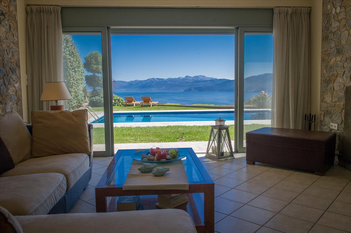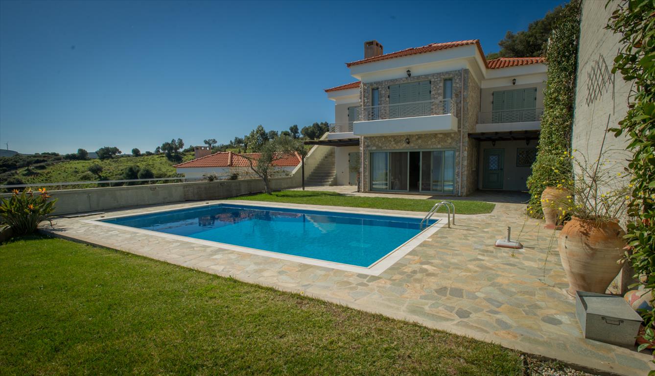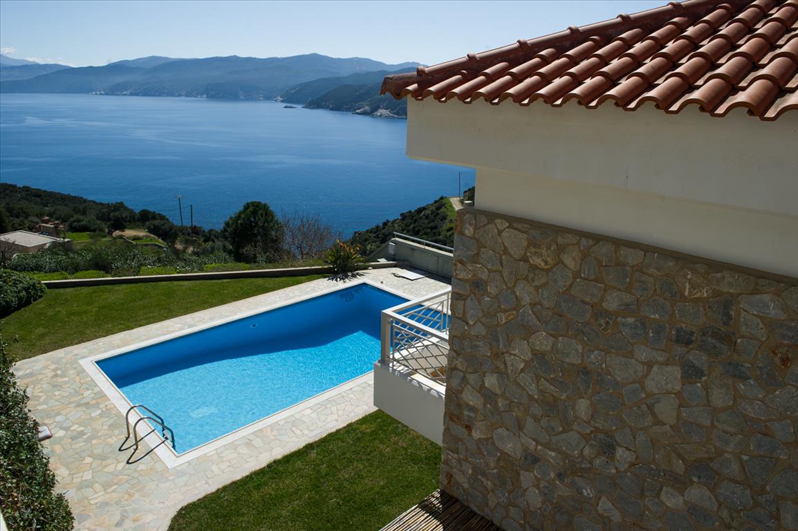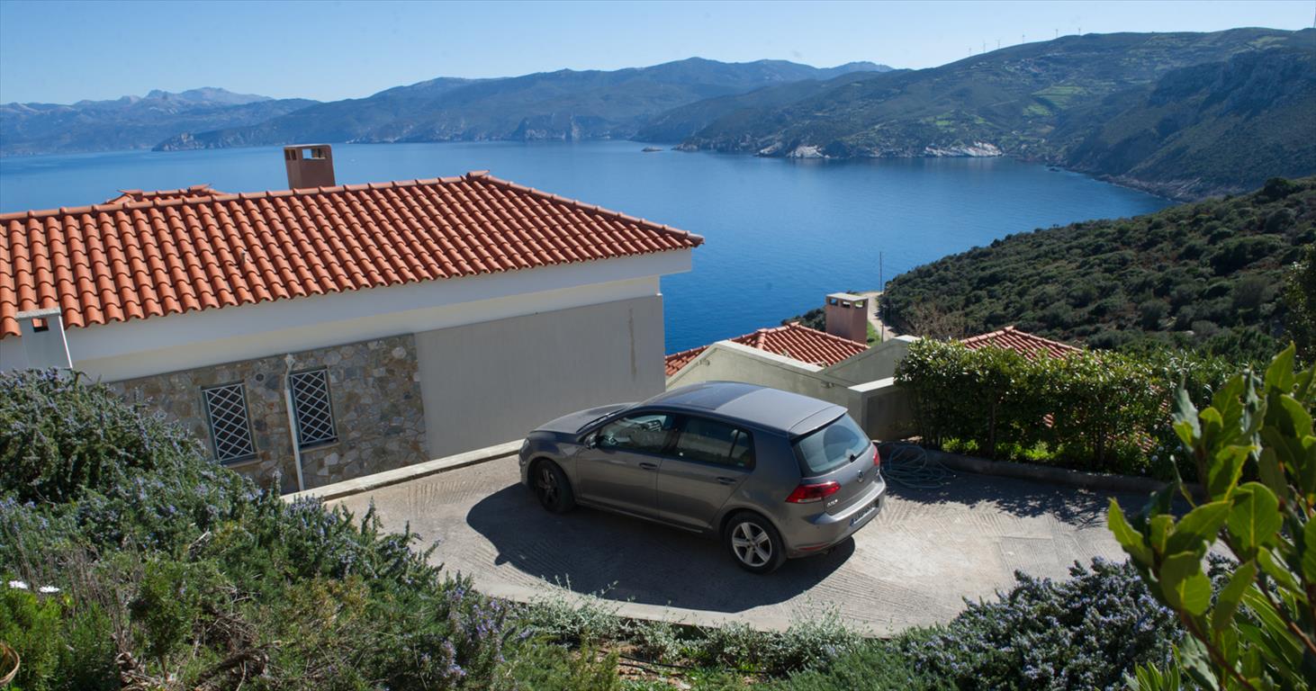 For sale 2-storey Villa of 150 sqm on the island of Evia. The first floor consists of one bedroom, living room with kitchen, one shower room. The second floor consists of 3 bedrooms, one bathroom. The Windows offer a magnificent view of the sea, the mountains and the forest. The object has solar panels for water heating, fireplace, air conditioning, barbecue, heating. The property is sold with furniture. The object has an alarm system. To the property belongs a Parking space, garden. The on-site swimming pool personal use. The Villa is located in the village of Limani - Mesokhorion, on the island of Evia.