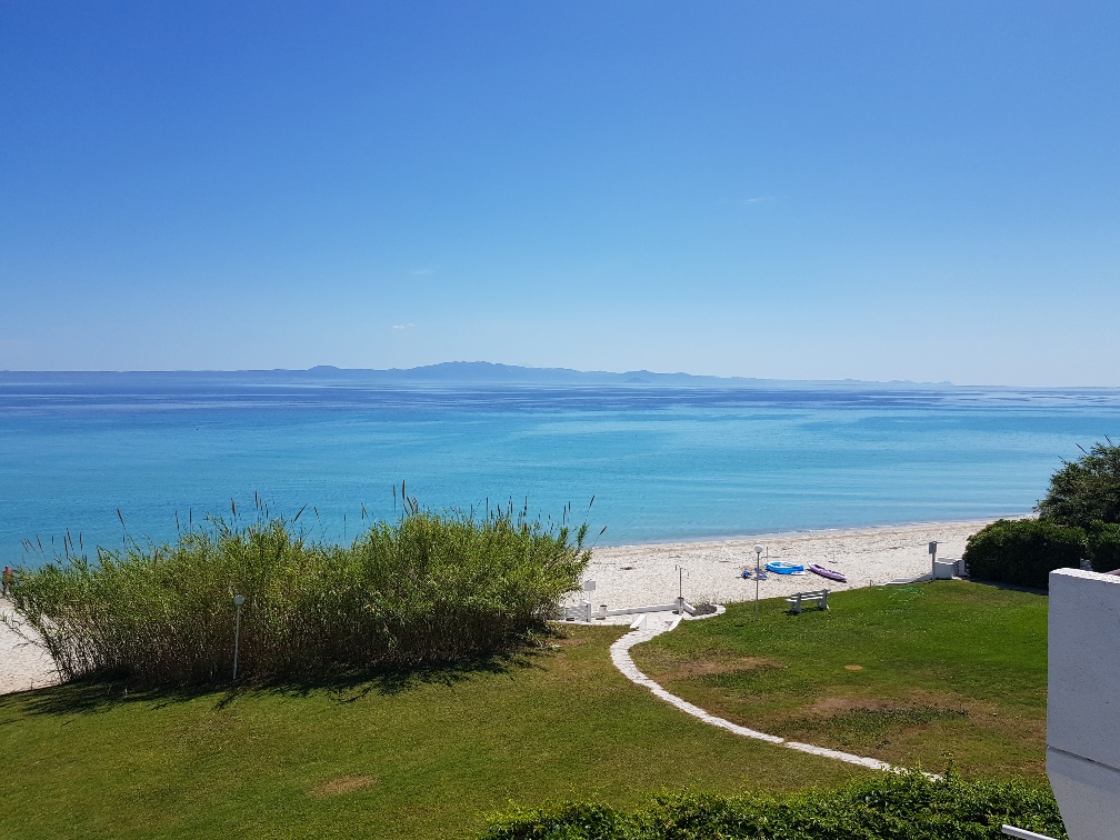Apartments for sale 100 sqm on the Kassandra Peninsula, Halkidiki, Greece Townhouse is on 2 levels. The first floor consists of living room with kitchen, one shower room. The second floor consists of 3 bedrooms, one shower room. The Windows offer views of the sea, the mountains and the forest. The object has air conditioning, barbecue area. The property is sold with furniture. To the property belongs a Parking space, garden.