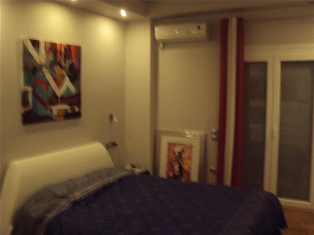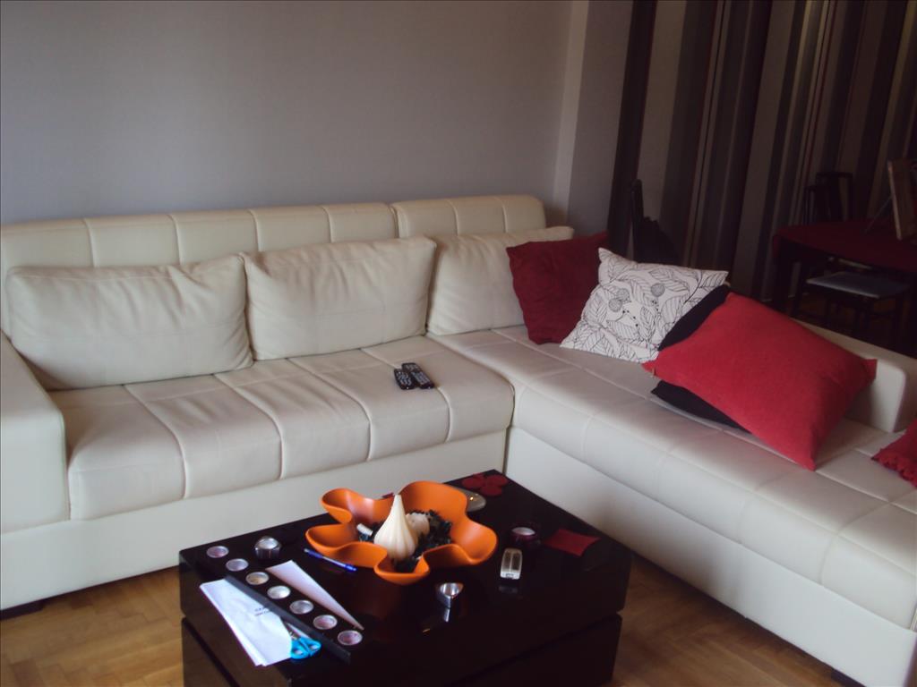 For sale apartment of 76 square metres in Athens. The apartment is located on the fifth floor and consists of one bedroom, living room, one kitchen, 2 shower rooms. The Windows offer a magnificent view of the mountains and the city. The object has solar panels for water heating, air conditioning, heating. The property is sold with furniture. The building is an Elevator. The apartment is located in the area NEOs Kosmos