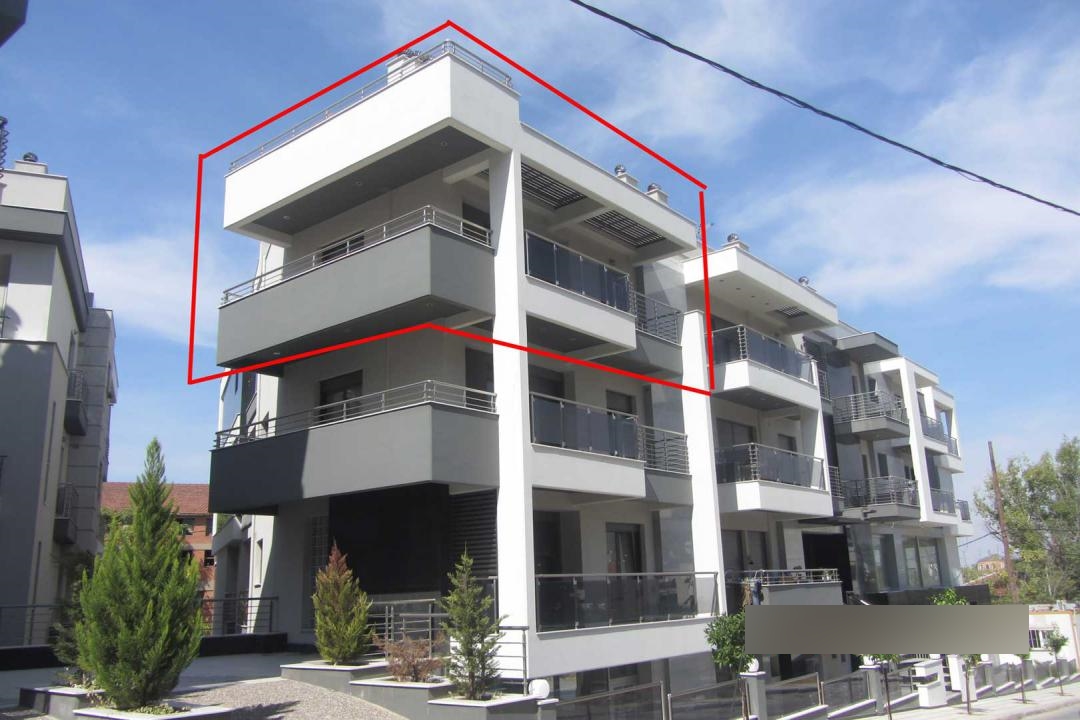 For sale duplex apartment with an area of 137 sq m in Thessaloniki. The duplex is on 2 levels. The fourth floor consists of living room with kitchen, one shower room. The fifth floor consists of 3 bedrooms, one bathroom. This duplex apartment has a corner location. The Windows offer views of the city. The object has a fireplace, heating. The building is an Elevator. To the property belongs a Parking space. The apartment is located in the district of pylaia.