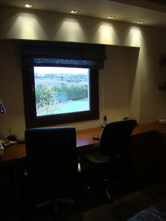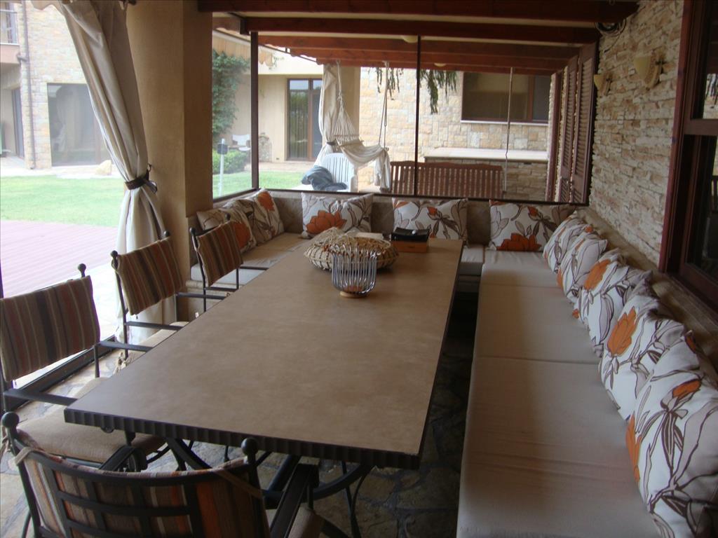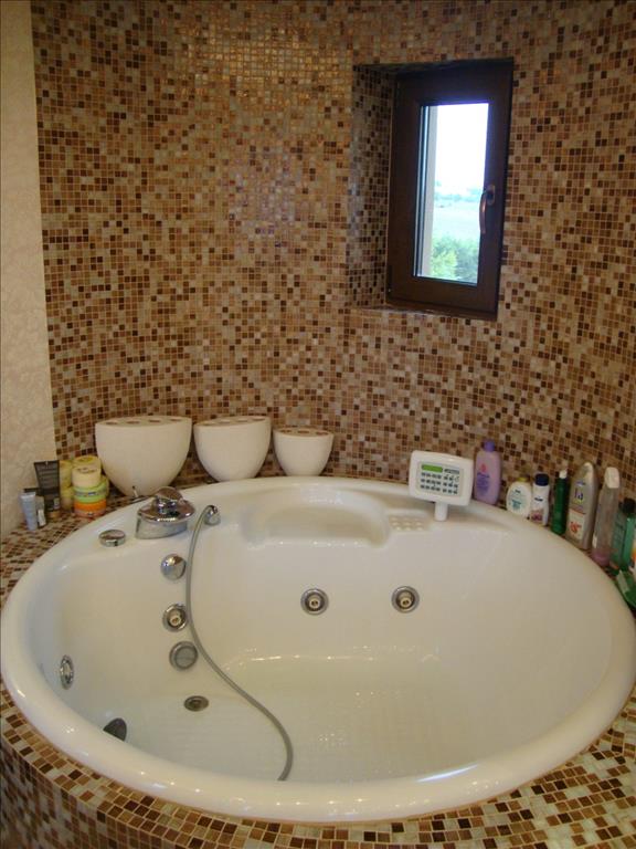 For sale 3-storey Villa with an area of 480 square meters in the suburbs of Thessaloniki. The first floor consists of living room with kitchen, one shower room, one pantry, one sauna. The second floor consists of one bedroom, living room, one kitchen. The third floor consists of 3 bedrooms, 2 bathrooms. The object has solar panels for water heating, fireplace, air conditioning, awnings, barbecue, heating. The building is an Elevator. The object has an alarm system. To the property belongs a Parking place, garden, garage. The on-site swimming pool personal use.