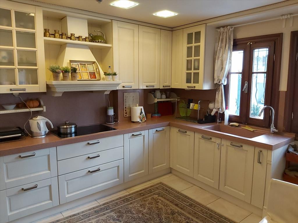 Sale house with an area of 315 sq. m in Thessaloniki. The townhouse is on 3 levels. The basement consists of living room with kitchen, one bathroom, one storeroom. The first floor consists of living room with kitchen, one bathroom, one storeroom. The second floor consists of 3 bedrooms, one bathroom, one shower room, 2 storerooms. The object has a fireplace, air conditioning, heating. The object has an alarm system. To the property belongs a Parking space. The apartment is located in reincarnate.