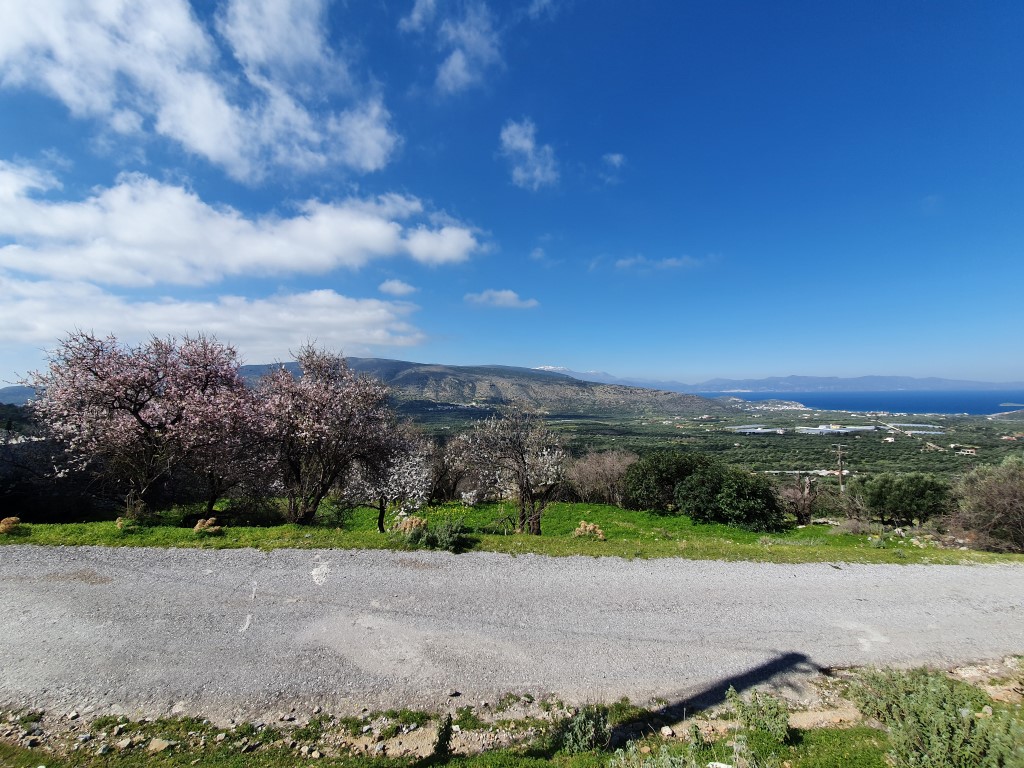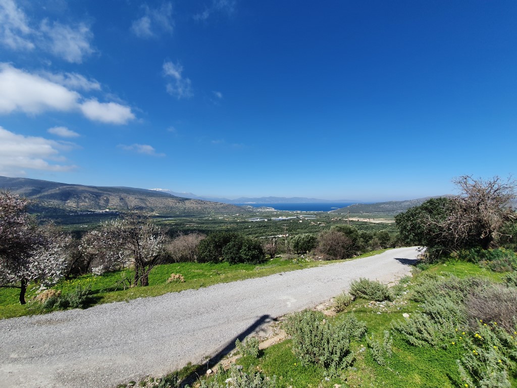 Land for sale with an area of 283 sq. m. on the island of Crete. On-site water, electricity, with possibility to build 240 sqm. Has a magnificent view of the sea, the mountains and the city.