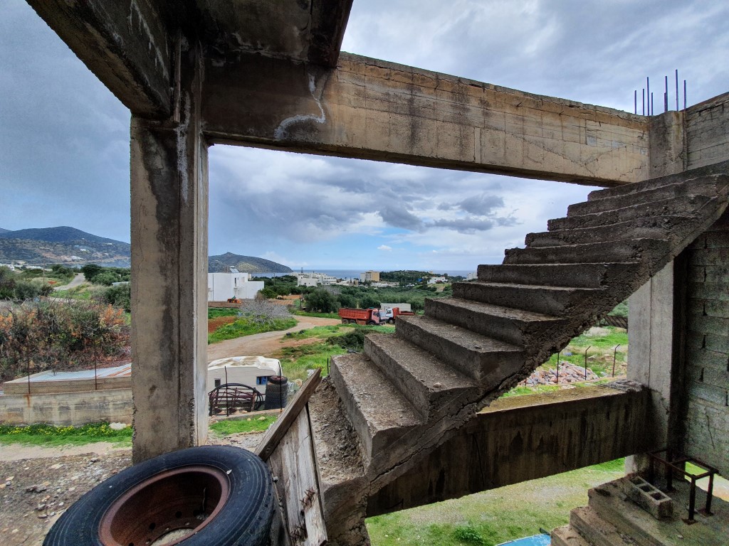 Sold by Ogorodny land area 4580 sqm on the island of Crete. On-site construction, water, electricity. Has a sea view. On the plot there is an unfinished building with an area of 1200 sq. m.