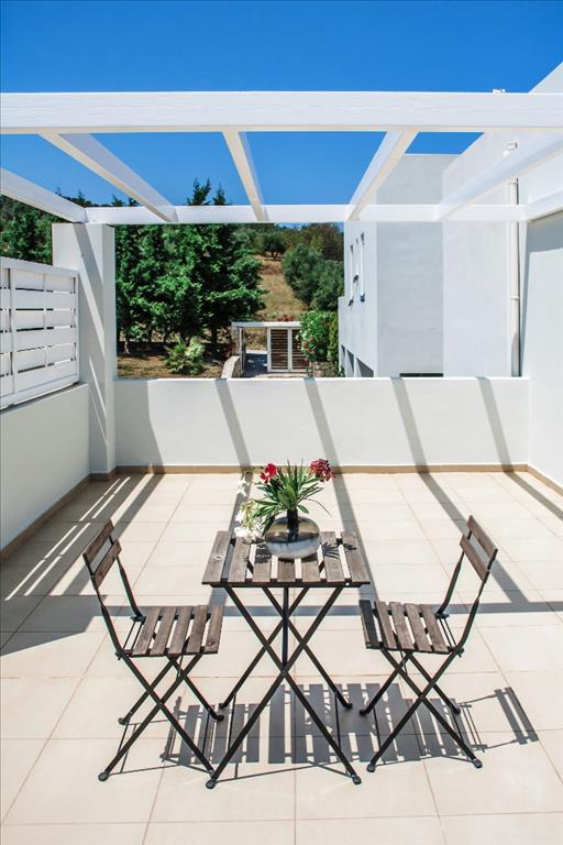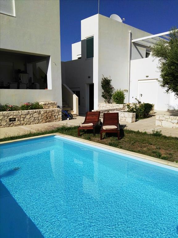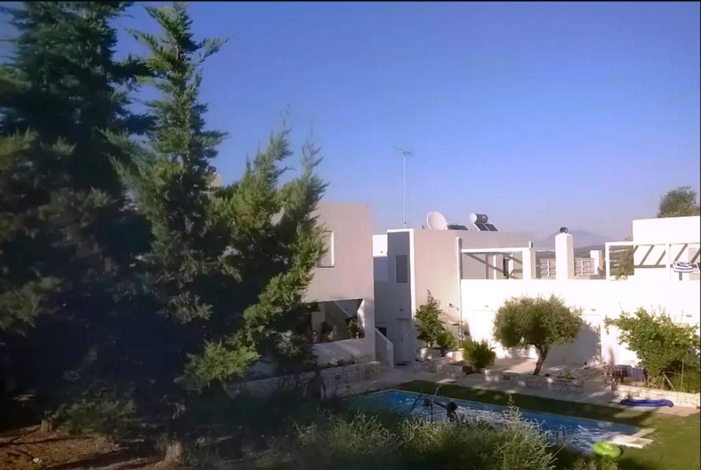 For sale townhouse with area of 77 sqm on the island of Crete. Townhouse is on 2 levels. The first floor consists of one bedroom, living room with kitchen, one shower room. The second floor consists of one bedroom, one shower room. The Windows offer views of the mountains and the city. The object has solar panels for water heating, air conditioning, heating. The property is sold with furniture. To the property belongs a Parking space. The owners of the communal pool on site. The complex consists of 5 townhouses. On the territory of the complex a communal swimming pool. Heating outdoor.