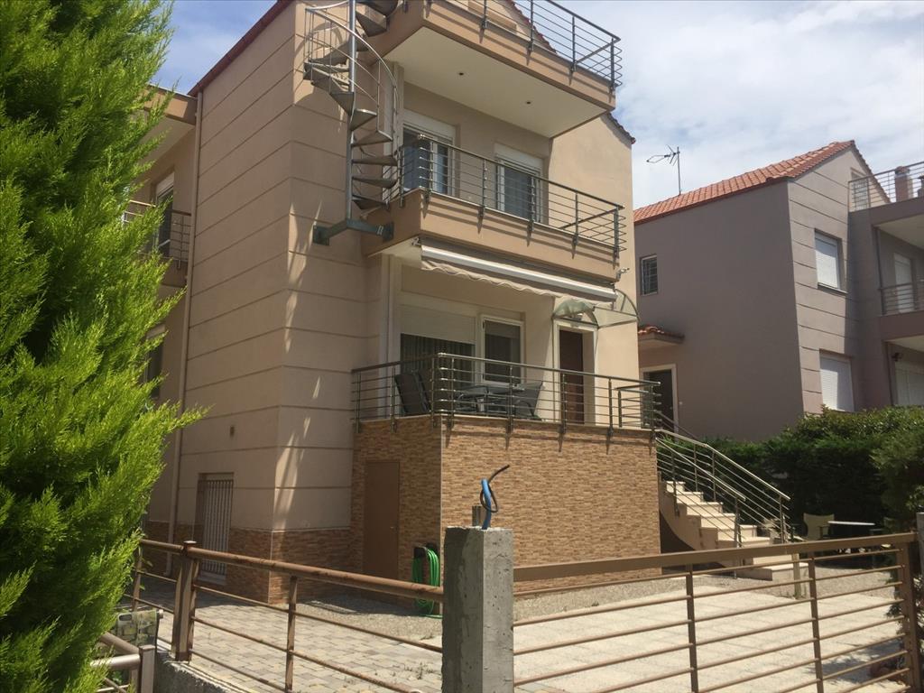 Sale 4-storey house 250 square meters in the suburbs of Thessaloniki. The first floor consists of one bedroom, living room with kitchen, one bathroom. The second floor consists of living room with kitchen, one bathroom. The third floor consists of 2 bedrooms, one bathroom, one office. The fourth floor consists of one sleeping room, 2 storerooms. The object has solar panels for water heating, air conditioning, fireplace, tents, heating. The property is sold with furniture. The object has an alarm system. To the property belongs a Parking space.