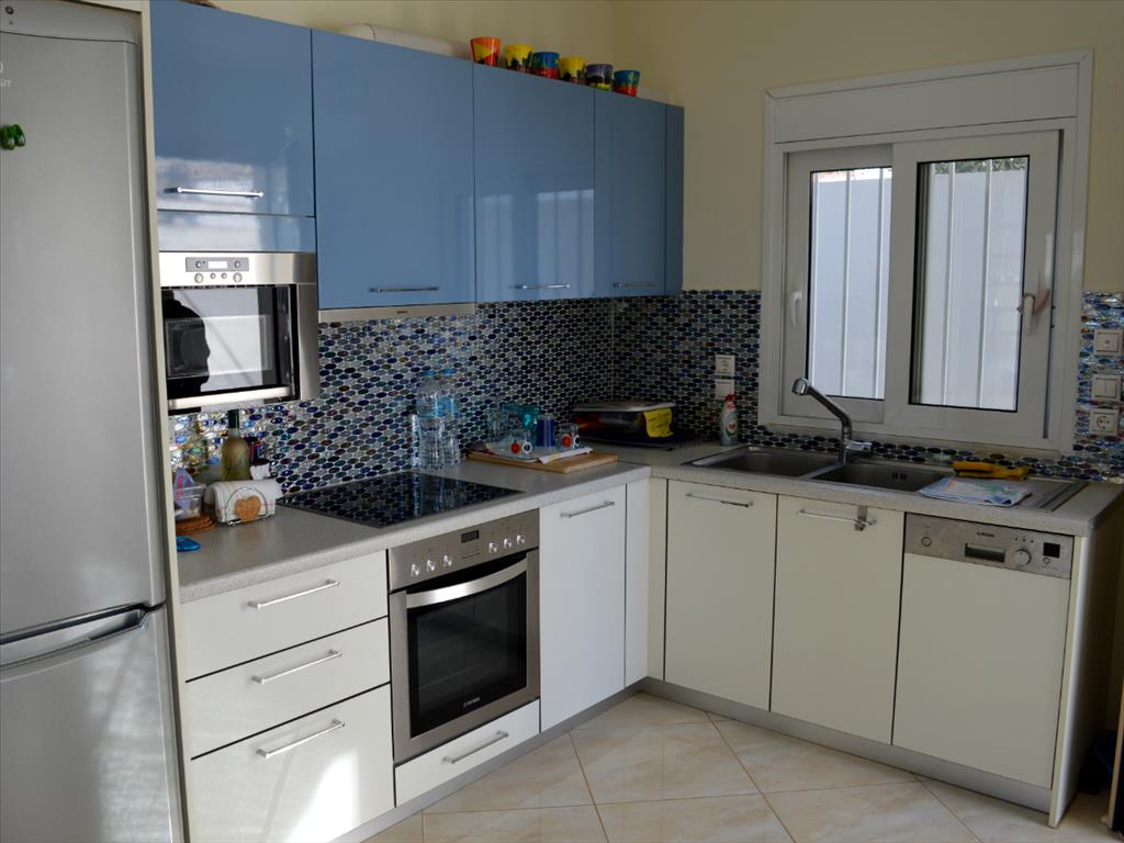 Sale townhouse of 130 sq. meters in Attica. The townhouse is on 3 levels. The basement consists of a living room, one shower room. The first floor consists of 2 bedrooms, living room with kitchen, one shower room. The second floor consists of a living room, one bathroom. The Windows offer a magnificent view of the sea, the mountains and the city. The object has solar panels for water heating, fireplace, air conditioning. The property is sold with furniture. The object has an alarm system. To the property belongs a Parking space, garden. The townhouse is situated in the center of Rafina.