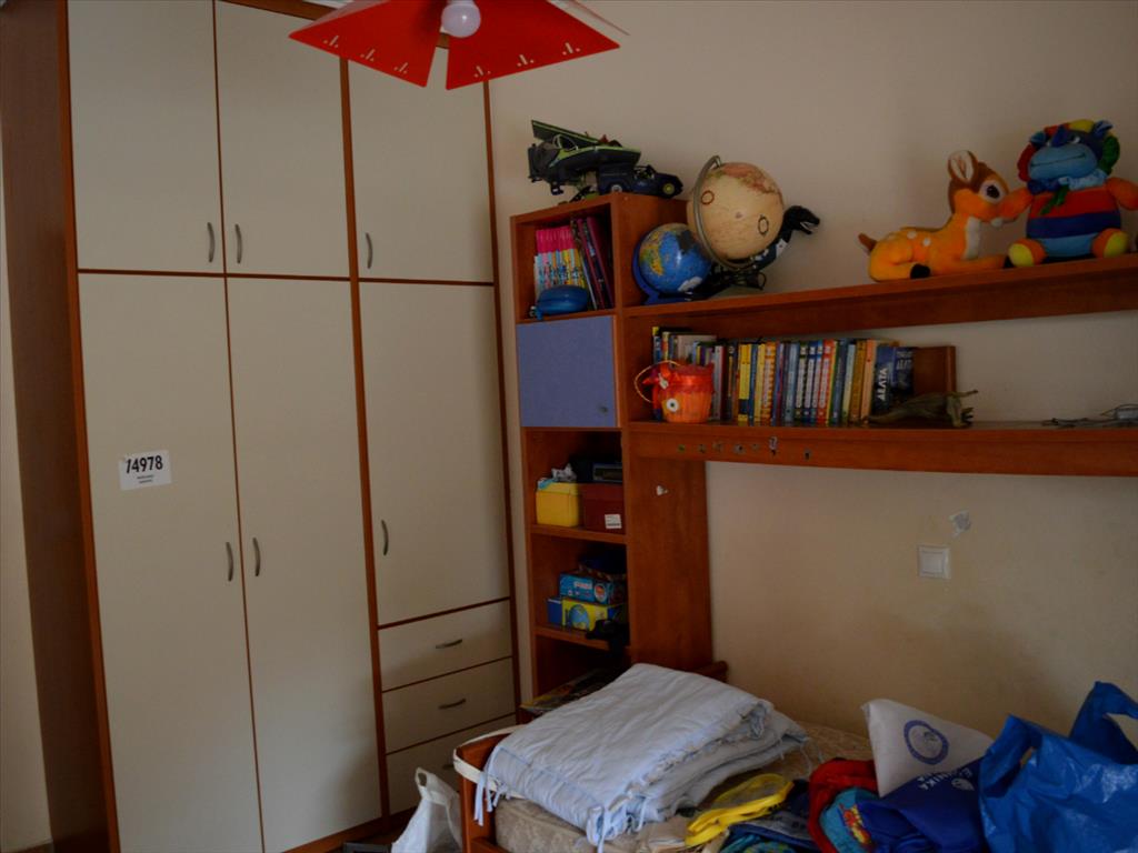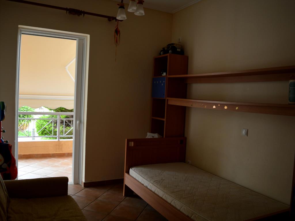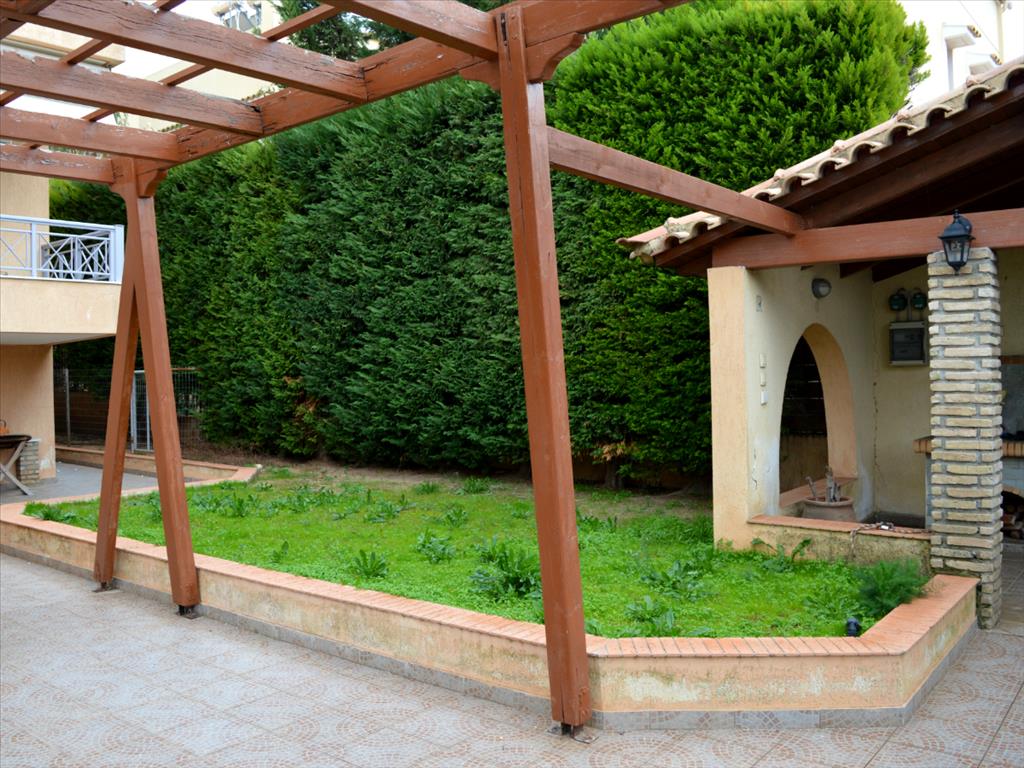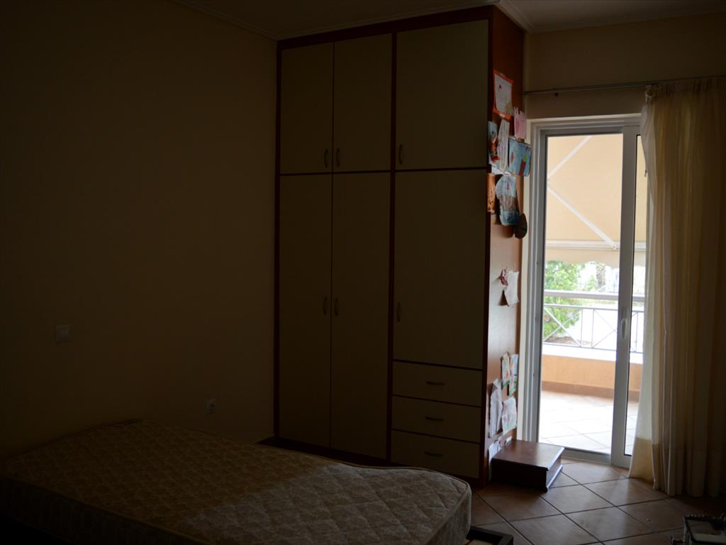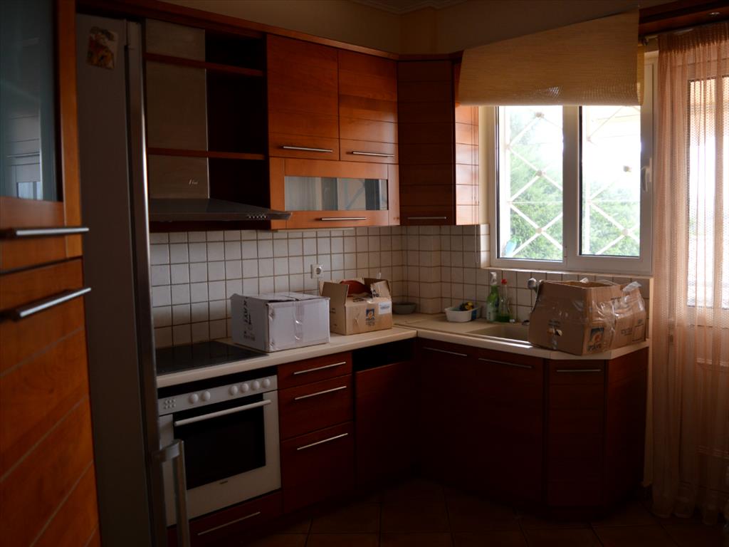 Apartment for sale of 124 sqm in the attic. The apartment is located on the ground floor and consists of 3 bedrooms, living room with kitchen, 2 bathrooms. The Windows offer views of the mountains, the forest. The object has solar panels for water heating, fireplace, awnings, barbecue, heating. The property is sold with furniture. The object has an alarm system. To the property belongs a garden and garage. The apartment is located in the town of Rafina