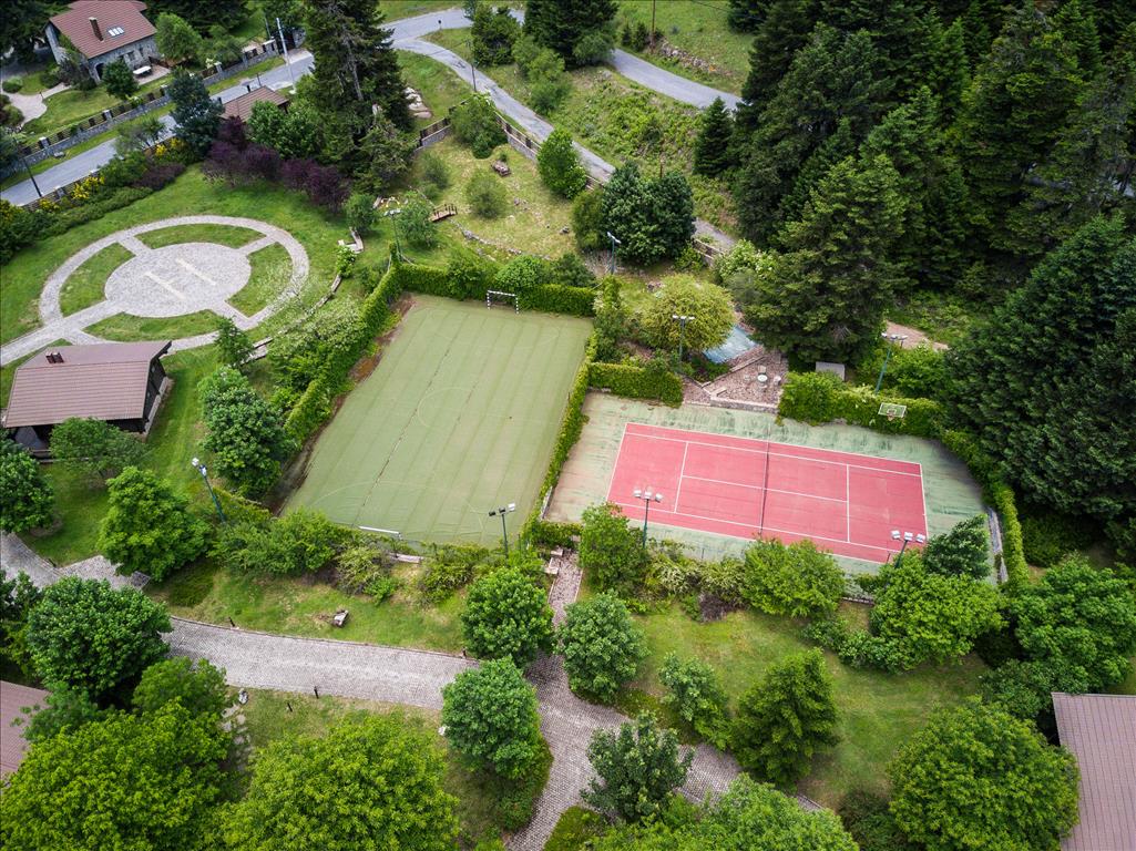 Chalet complex In mountainous Arcadia, only two hours drive from the Greek capital of Athens, at an altitude of about 1.330 above sea level among mountain forest landscape is a complex of seven private cottages and one Villa (300 K. M.). Location: bordered by small local picturesque villages such as Vytina, Dimitsana, Stemnitsa also the red a small river Lousios, all this in conjunction with the local mountain landscapes, extraordinary landscapes and ancient monasteries, leaves a lasting impression on the traveler, for the first time confronted with the uniqueness of the local nature. Complex (General description): the Main Villa total area 300 K. m, it comprises: spacious living room with large fireplace, one dining room accommodates up to 30 people, the kitchen is professionally equipped, two bedrooms each with a private bathroom, one children room, two halls, one games room, which already had a variety of games (Billiards, mini football, FLIPPERR, JUKE-BOX, HOME-CINEMA), wine cellar, Laundry room fully equipped with modern appliances. The Chalet has six separate cottages(80 K. M.),each of which consists of: one bedroom, one children's room with separate bathroom and toilet , small kitchen, veranda and with its own Parking space. Two-storey cottage(200 K. M.) - includes will spalnu Suite with its own bathroom combined with toilet, the living room also has a fireplace and a kitchen. Also in the basement there is a small living room and a gym. On the territory of the complex are also the ancient Church of the Byzantine era restaurant ZAKRYTOGO, fully-equipped (oven, barbecue), children's Playground, tree house, indoor storage room for equipment and for firewood for the fireplace, nebolshoe lake that is rich in live fish, playgrounds for football, basketball, and tennis courts, dog kennels, guard posts and two generators in case ekstrennogo disconnect from the mains. Capacity:up to 25 guests and 5 staff members. Covered area:1.300 K. M. Palisada territory:the complex around the perimeter surrounded by forest. The area is planted more than 3,000 trees, flowers and bushes. All the buildings made of Finnish wood, meet special quality standards. Internal paths are lined with natural stone. In all buildings there are Antiques and art objects. Furniture and equipment:Italian handmade furniture, made to order, the complex is fully equipped with modern appliances, houseware and utensils. All areas (internal and external) equipped with sound equipment (Hi-FI). Other equipment:snow removal equipment, ATV (2 PCs), snowmobiles (2pcs), nebolshoy truck type truck brand of Nissan, one truck for water transportation Volvo. Infrastructure:water supply systems, sewage systems, electricity, alarm systems, system, fire protection, sensors, fire, lightning, security facilities. The nature of the area, because of its special location, clean. The complex is ideal for guests of any level! Discover the other side of life, away from the hustle and bustle of big cities! Nature mountain landscapes combined with coziness and comfort, the highest level is something that's perfect for you and your loved ones to purchase their personal area of the tale in mountainous Arcadia.