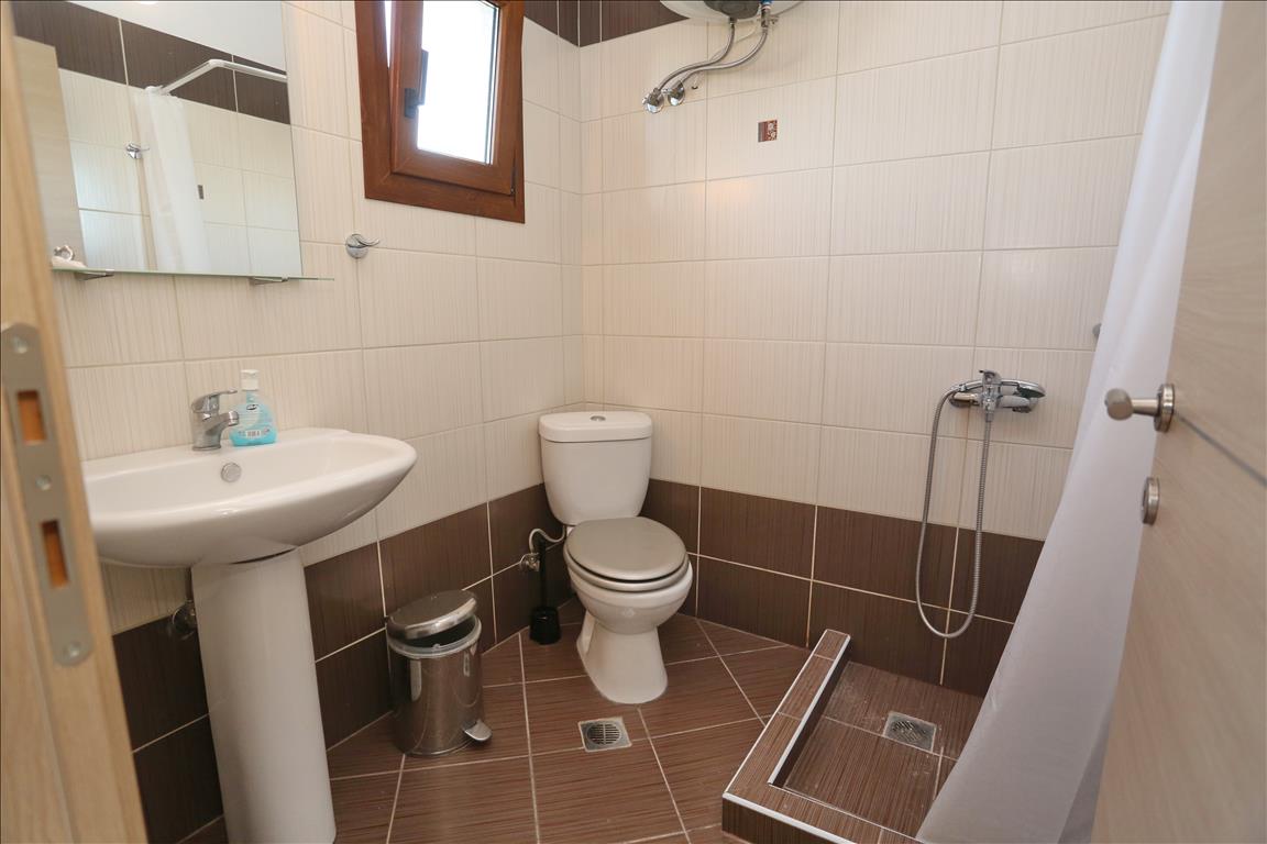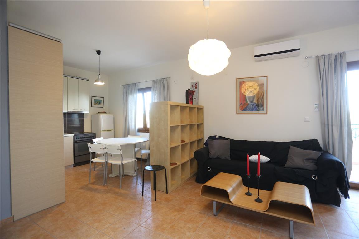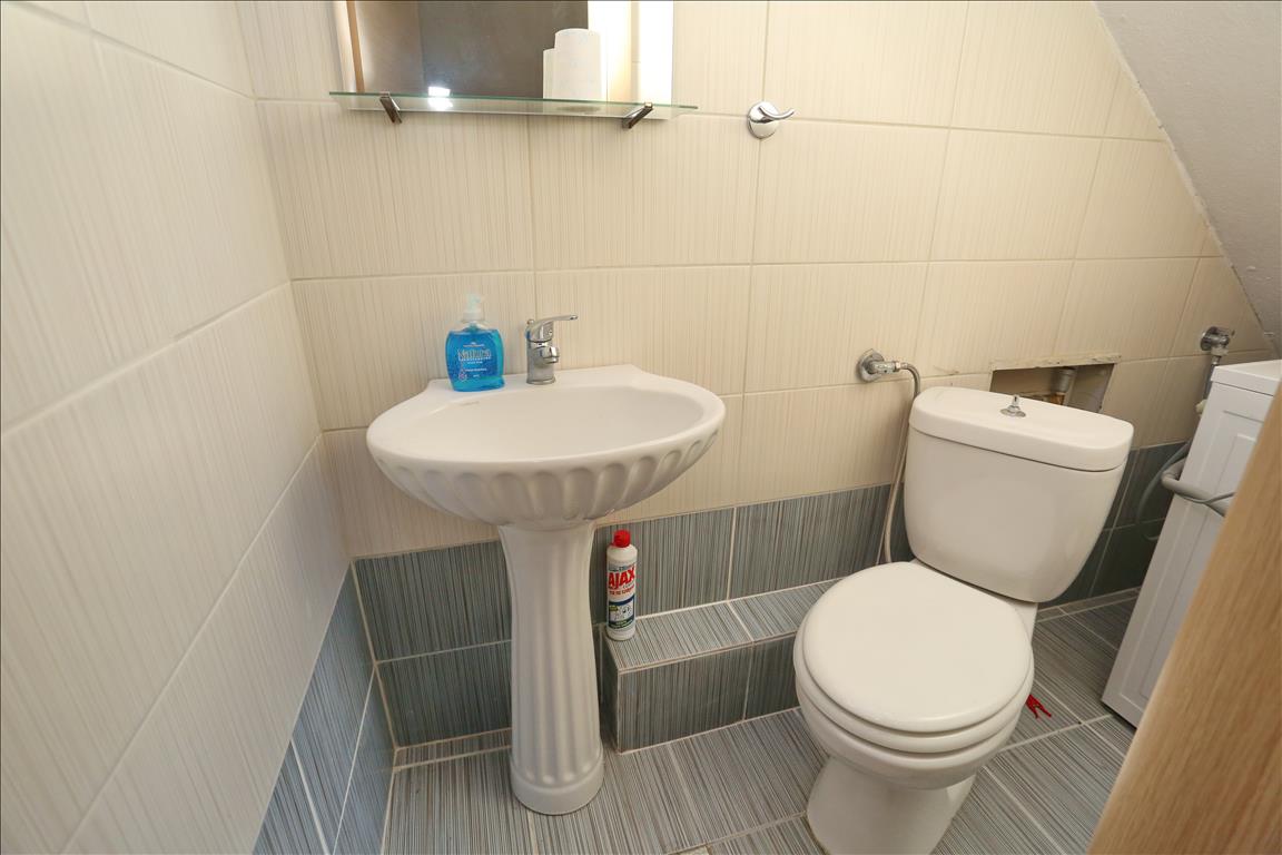 For sale townhouse with area of 95 sqm on the Kassandra Peninsula, Halkidiki, Greece Townhouse is on 2 levels. The second floor consists of one bedroom, living room with kitchen, one bathroom. The third floor consists of one bedroom, one shower room. The townhouse enjoys a corner location. The object has a fireplace, air conditioning, barbecue, heating. The property is sold with furniture. To the property belongs a Parking space, garden.