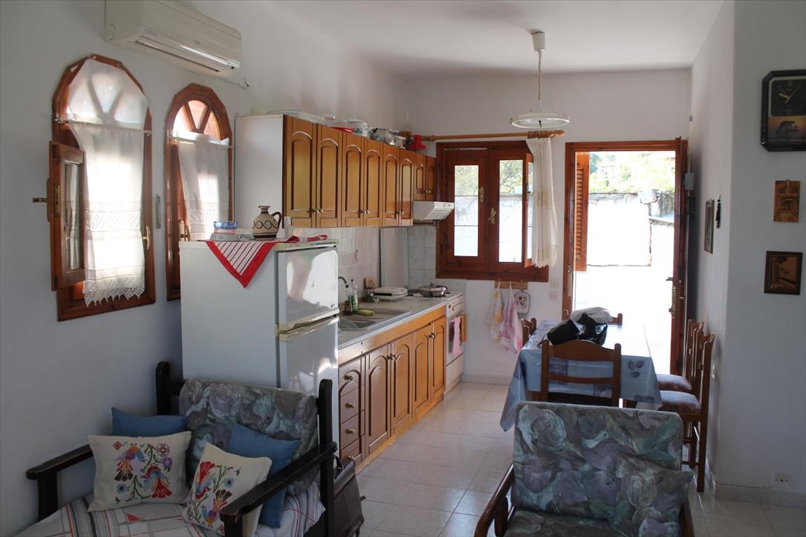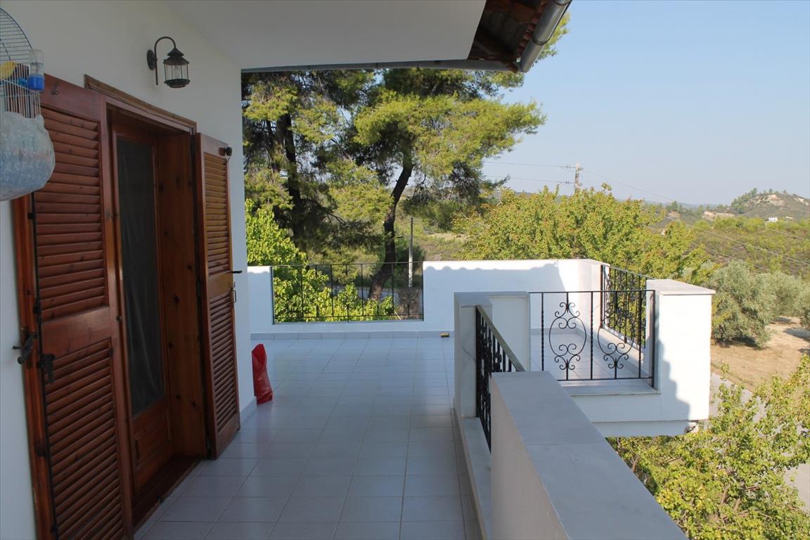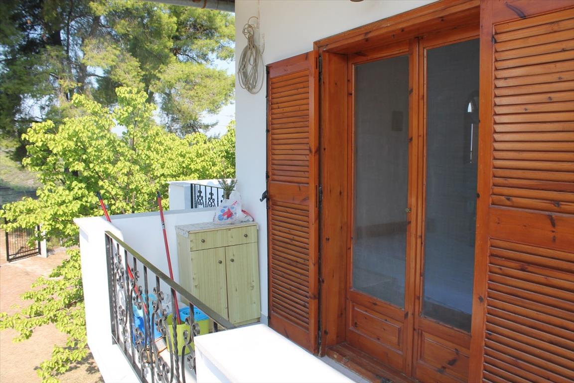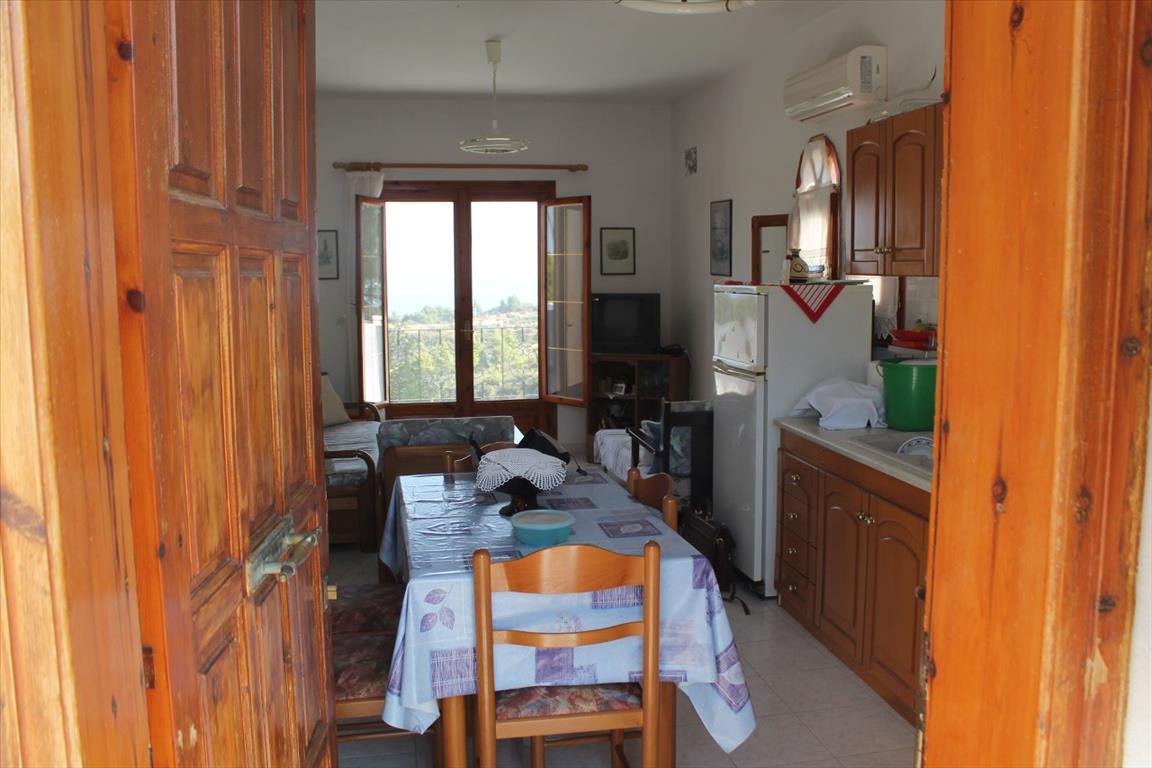 For sale 1-storey house with area of 150 sqm on the Kassandra Peninsula, Halkidiki, Greece The cottage consists of 2 bedrooms, living room with kitchen, one bathroom. The Windows offer a magnificent view of the sea, the mountains, the city, the forest. The object has solar panels for water heating, air conditioning. The property is sold with furniture. To the property belongs a Parking space.