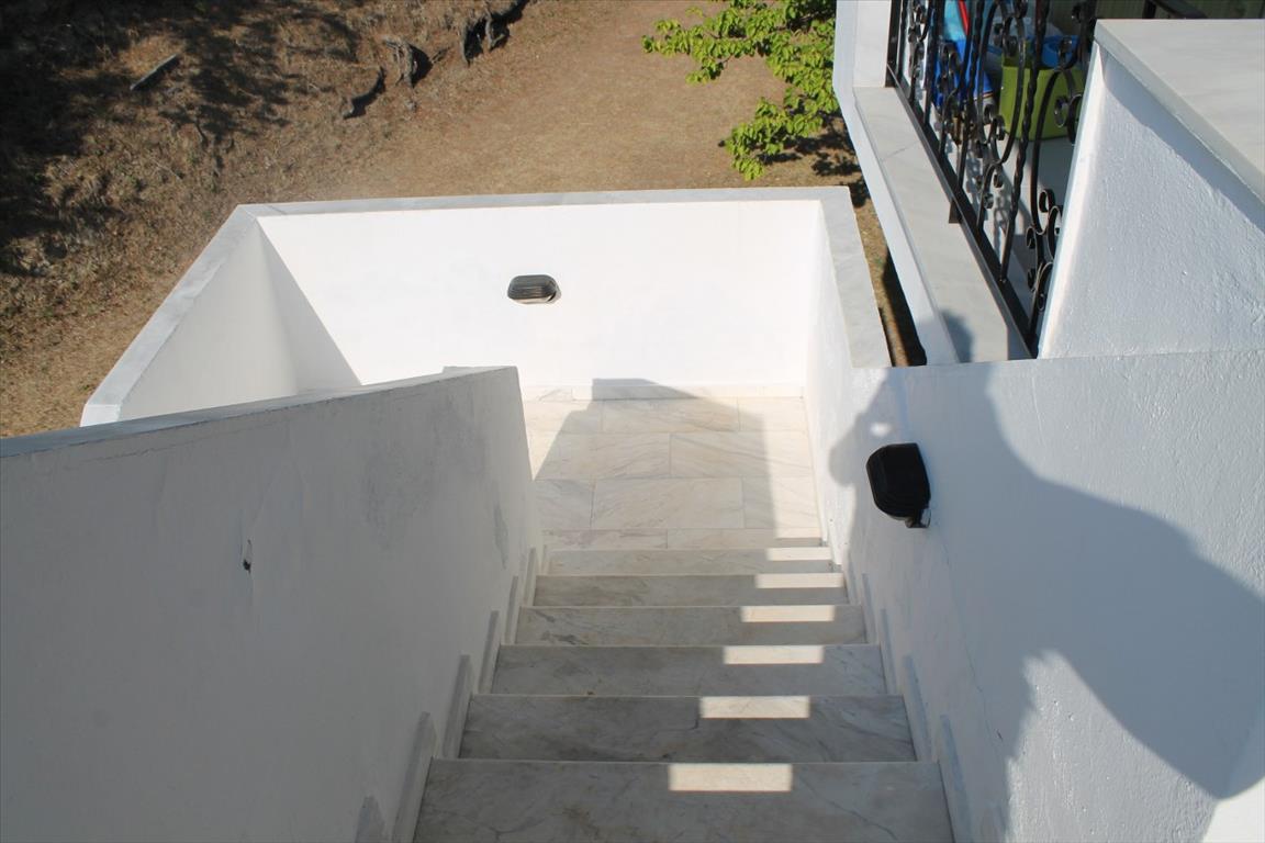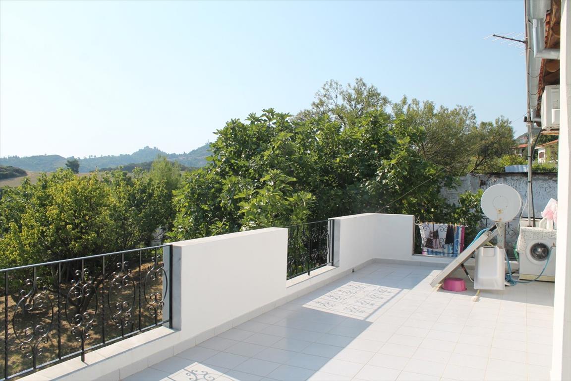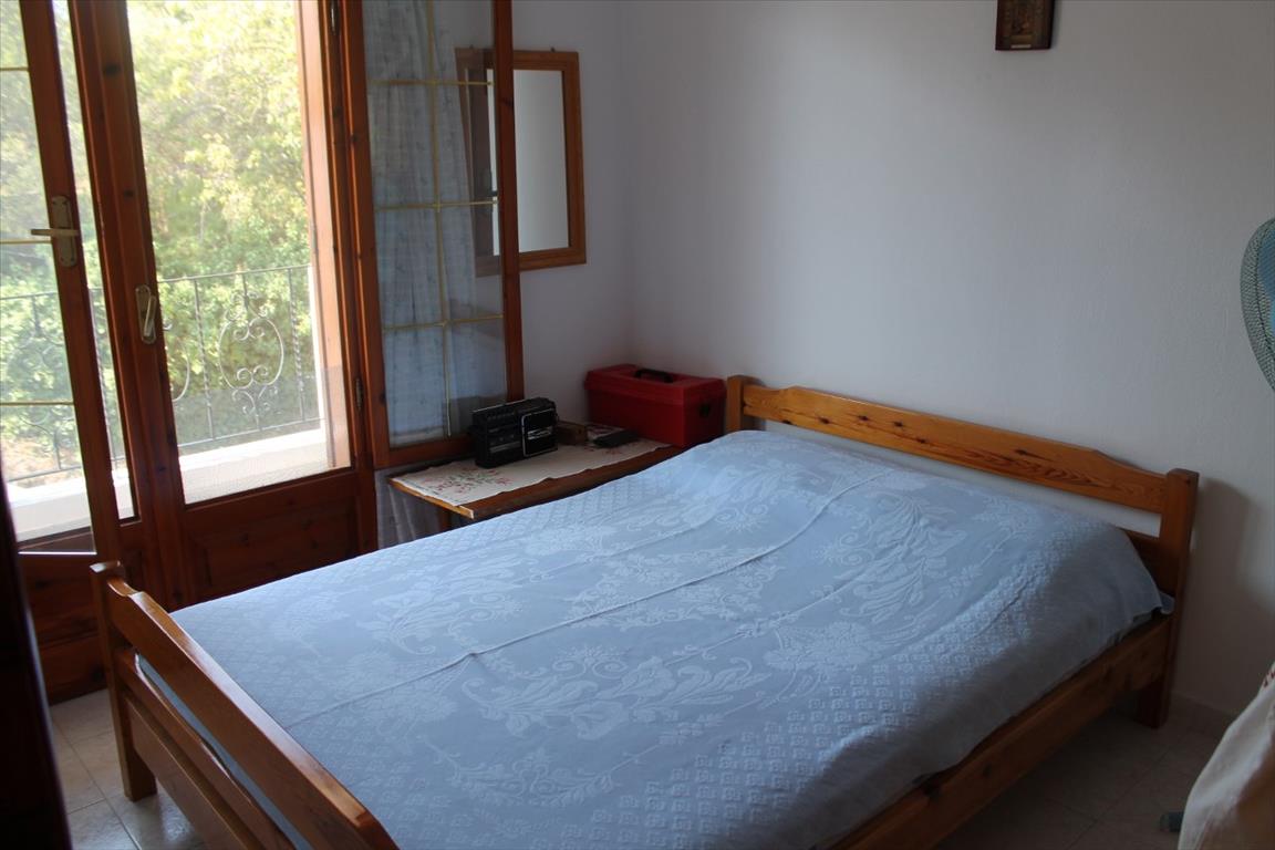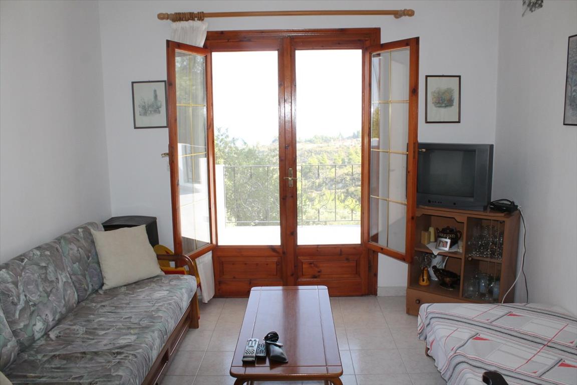 For sale 1-storey house with area of 150 sqm on the Kassandra Peninsula, Halkidiki, Greece The cottage consists of 2 bedrooms, living room with kitchen, one bathroom. The Windows offer a magnificent view of the sea, the mountains, the city, the forest. The object has solar panels for water heating, air conditioning. The property is sold with furniture. To the property belongs a Parking space.