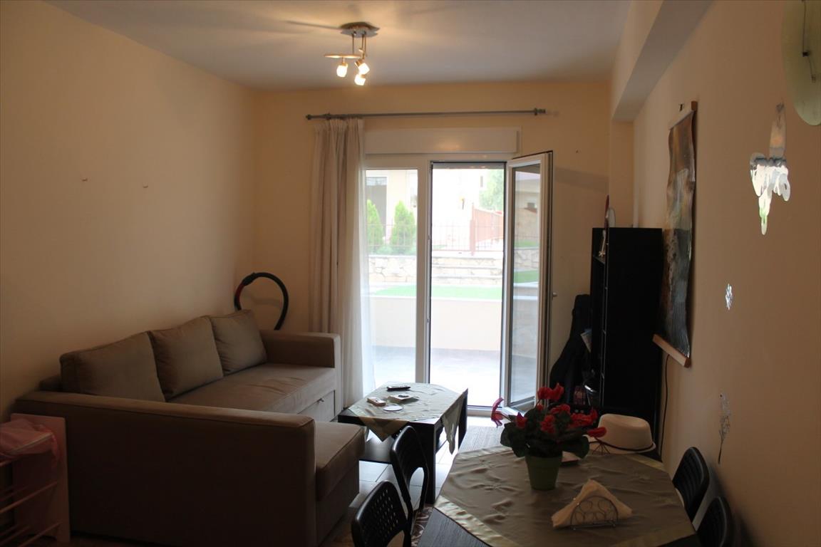 Apartment for sale 55 sqm on the Kassandra Peninsula, Halkidiki, Greece The apartment is located on the ground floor and consists of 2 bedrooms, living room with kitchen, one shower room. The Windows offer views of the sea. The object has air conditioning, awnings. The property is sold with furniture.