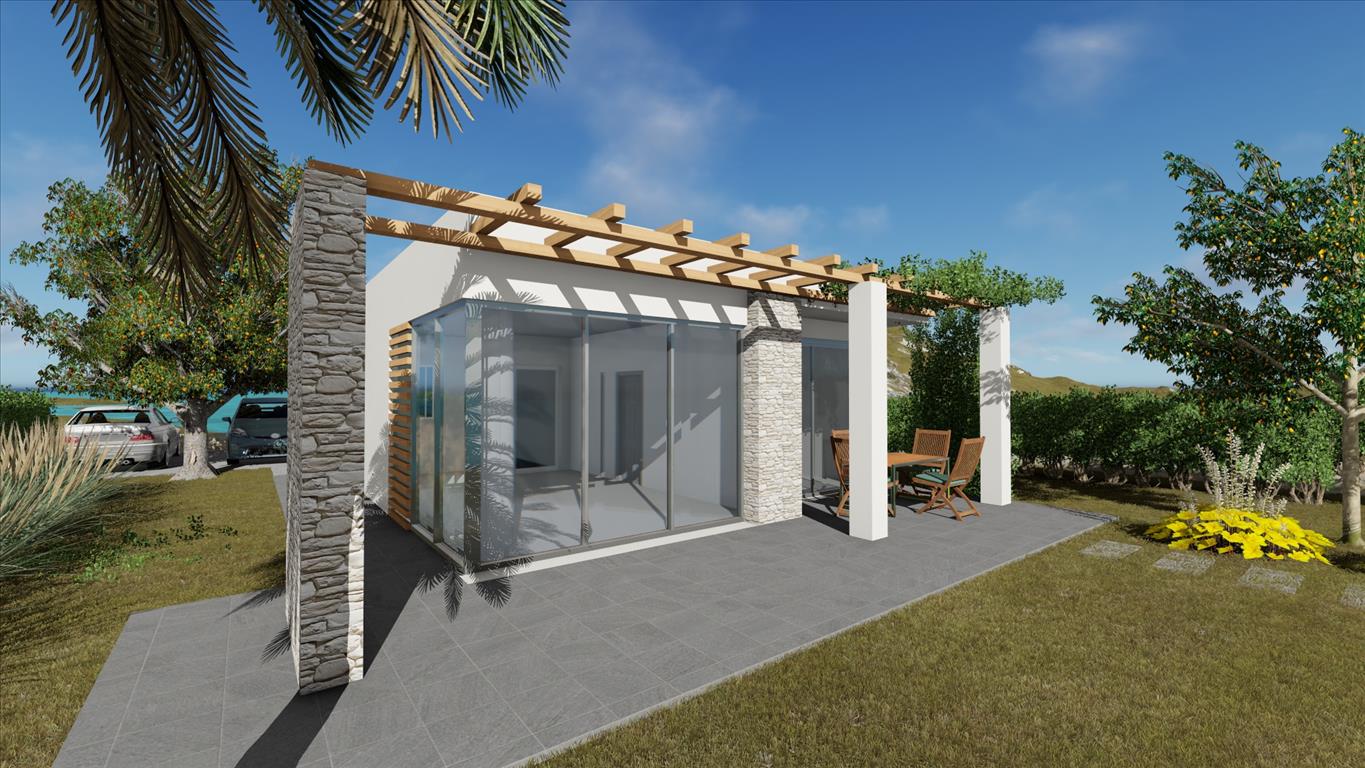 For sale 1-storey house with an area of 60 sqm in Sithonia, Halkidiki, Greece The cottage consists of 2 bedrooms, living room with kitchen, one shower room. The Windows offer a magnificent view of the sea. The object has solar panels for water heating, barbecue, heating. To the property belongs a Parking space, garden. The project “NYMPH 1” in Kriaritsi one-Storey house of 60 m2 comfortable combines the total space is functionally divided into kitchen and living room, as well as planning 2 separate bedrooms with a shared bathroom. From the living room and bedrooms have an exit to spacious terrace. The cost of the project from 180 000€(plot 500m2, house, landscaping).