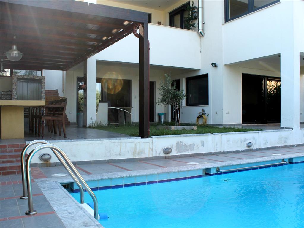 For sale 3-storey Villa with an area of 386 sq. meters in Attica. The first floor consists of 2 bedrooms, 2 living rooms with kitchen, 2 shower rooms. The second floor consists of living room with kitchen, one bathroom. The third floor consists of 4 bedrooms, 2 bathrooms. The Windows offer a magnificent view of the sea, the mountains, the city, the forest. The object has solar panels for water heating, fireplace, air conditioning, awnings, barbecue, heating. The property is sold with furniture. The building is an Elevator. The object has an alarm system. To the property belongs a Parking place, garden, garage. The on-site swimming pool personal use. The Villa is located in the town of Kalithea - Rafina.