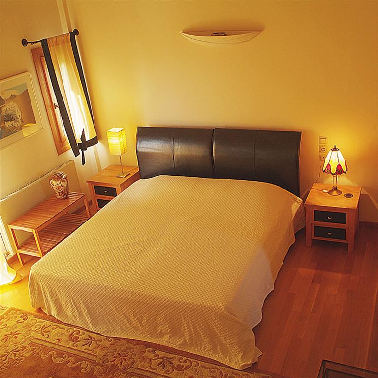 We offer you a Villa in South Pelion, built to the highest standards. It opens to panoramic views of the picturesque village of Katigiorgis, the Aegean sea and of Skiathos. The Villa consists of 3 double bedrooms with oak parquet floors, each has a private bathroom and air conditioning. In addition, each bedroom has a loft where the bed is located. As needed, may be provided to another twin bedroom on the lower floor for the location of a larger number of guests. Living room with high ceiling, fireplace and oak flooring, dining room fused with kitchen. Has a spacious veranda, pool size 12 X 5m (for day and night use), barbecue, fruit trees, old olive trees and large paved courtyard around the Villa. The Villa is located in an old olive grove with an area of 10,000 square meters (some of the trees reach 80 and 100 years), and around which grow the pine forests. The front of the Villa looking in the northeast direction and before it offers a magnificent panoramic view of the whole of Skiathos and the Aegean sea. The Villa has EOT license and can be rented for 450 € per day.