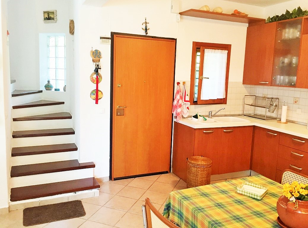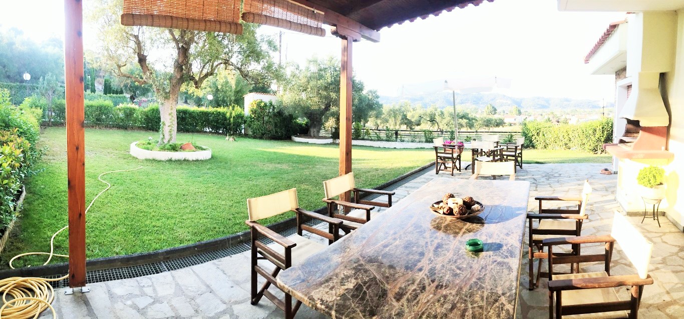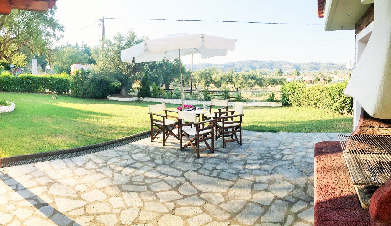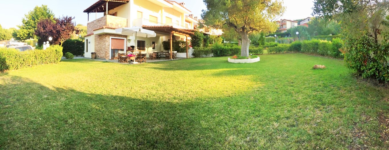 Sale house area of 110 sqm on the Kassandra Peninsula, Halkidiki, Greece The townhouse is on 3 levels. The first floor consists of living room with kitchen, one bathroom. The second floor consists of 2 bedrooms, one shower room. The third floor consists of one bedroom, one storeroom. The Windows offer a magnificent view of the mountains, the forest. The object has a fireplace, air conditioning, awnings, barbecue, heating. The property is sold with furniture. The object has an alarm system. To the property belongs a Parking space, garden.